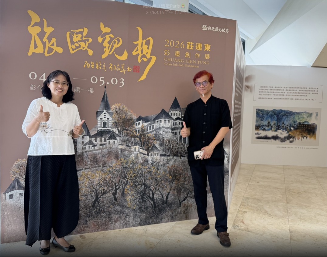 彰化縣文化局自即日起至5月3日,在彰化縣立美術館展出「旅歐觀想–2026莊連東彩墨創作展」,匯集藝術家莊連東近年歐洲自助旅遊之創作成果,透過東方筆墨詮釋歐洲風景,展現跨文化藝術對話,邀請觀眾走入兼具詩意與哲思的藝術場域。