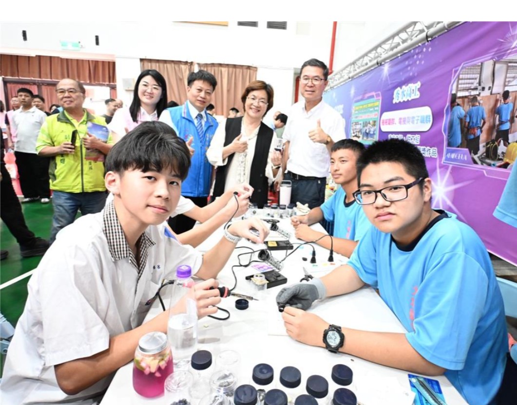 彰化縣114學年度國中技藝教育課程競賽頒獎典禮暨成果發表活動,4月20日在田中鎮龍江館盛大登場。彰化縣長王惠美親自表揚161位得獎學生及91位指導老師,並感謝12所技術型高中師長對技藝教育的投入與貢獻。