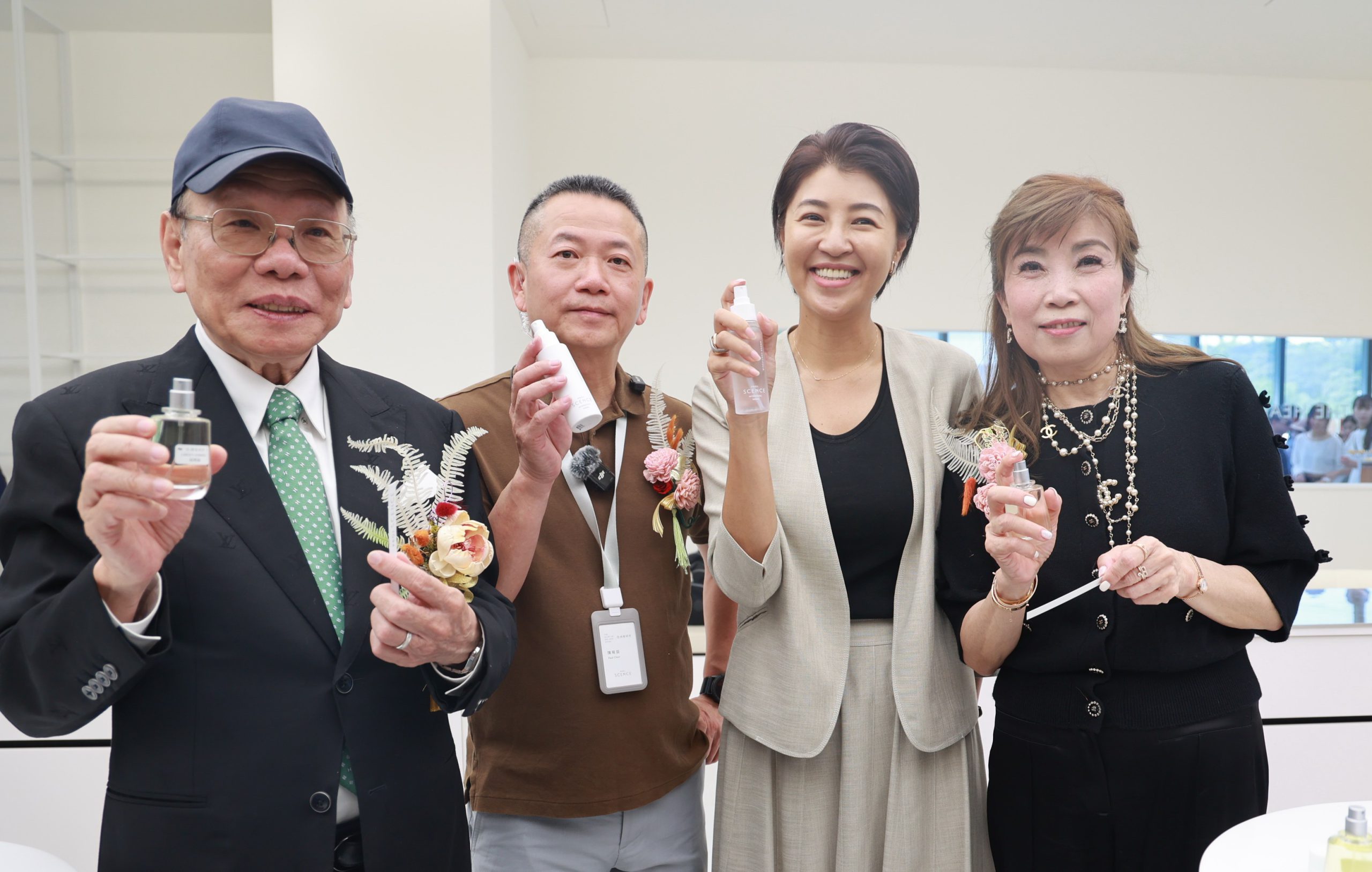 「亞洲香研所」可以體驗手作、聞香氣;香噴噴的味道,是不同的嗅覺體驗。許縣長不但試用香水,希望未來香氛的開發,也能延伸到茶香等領域,因為愛妮雅化「亞洲香研所」集合原料、研發、生產、教育及行銷於一體,更將在南投培養研發人才,創造更多就業機會,實現企業目標。
