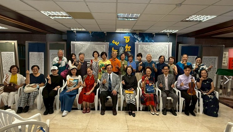 展覽作品涵蓋楷、行、草、篆等多種書體,並有圓形構圖等特色,展現書法藝術的多樣風貌與無限創意。10時30分舉行開幕茶會,邀請留美新一代音樂家陳為霖以小提琴演奏揭幕!現場來賓在喜歡的作品貼上紙條,展畢即可獲贈心經,引起熱烈回響!