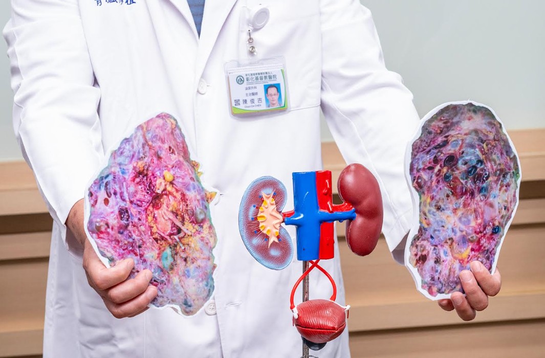 47歲補教業陳老師因多囊腎導致腎功能惡化、雙側腎臟腫大至正常的20倍。彰基醫學中心團隊先以達文西手術切除兩側腎臟,再由陳老師的妹妹捐贈活體腎臟完成移植,手術順利、腎功能恢復良好,陳老師已於9月重返講台。