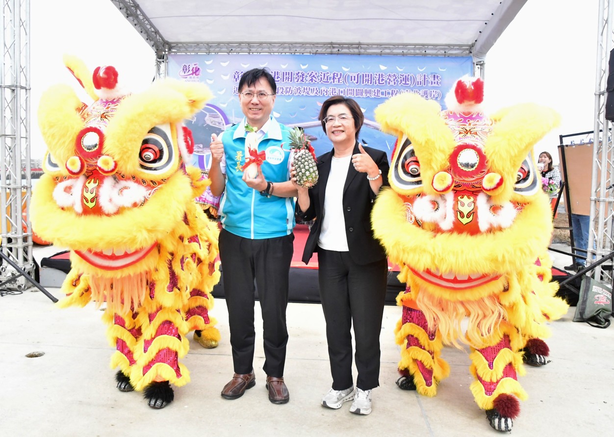 彰化縣政府積極推動漁業建設,今(28)日在鹿港鎮彰濱產業園區西北角的彰化漁港舉行「彰化漁港開發案近程(可開港營運)計畫近程第一階段防波堤及內港口開闢興建工程(南北護岸)開工動土典禮」,縣長王惠美、地方民意代表及漁民團體與會,共同見證啟動的時刻。工程範圍包含南北兩側護岸建設及基礎改善,工期預計600日曆天,將於116年下半年竣工。完工後將能提升港區防災功能,也確保漁船停泊及作業更為安全。