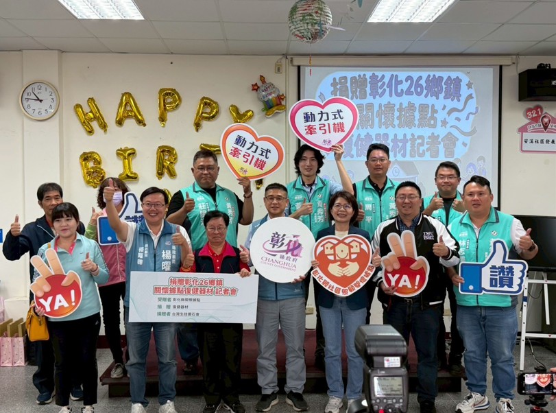 為增進長者健康、肌肉伸展及延緩失能,彰化縣政府於今(11)日上午在彰化市安溪社區舉辦「捐贈彰化26鄉鎮關懷據點復健器材」記者會,公私協力由9個企業及個人捐贈彰化縣26鄉鎮各1台復健器材, 26台價值共約130萬元。由機要秘書張建豐代表縣長王惠美出席,期盼藉由捐贈活動拋磚引玉吸引更多企業團體及善心人士參與,共同為增進社區長者健康而努力。
