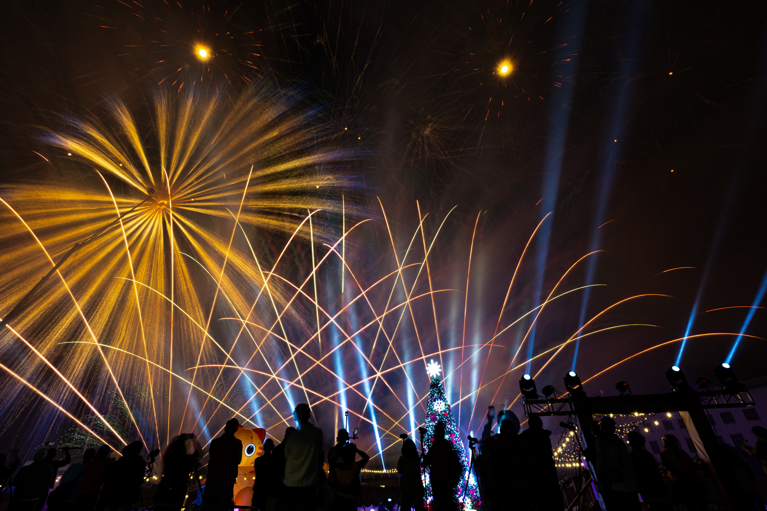 今年音樂聖誕晚會以「貓咪的世界」為點燈主題,搭配浪漫「花海步道」,將僑光國小周邊妝點得如夢似幻。璀璨「風火輪」煙火升空,更是驚艷全場,成為吸睛的聖誕活動。