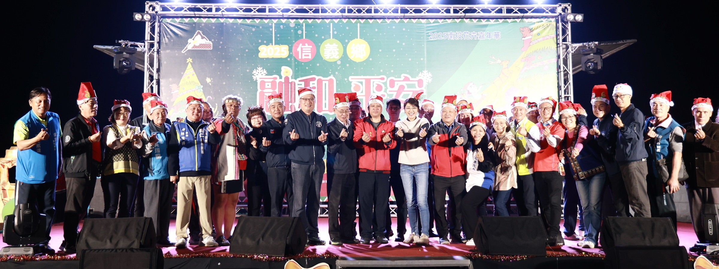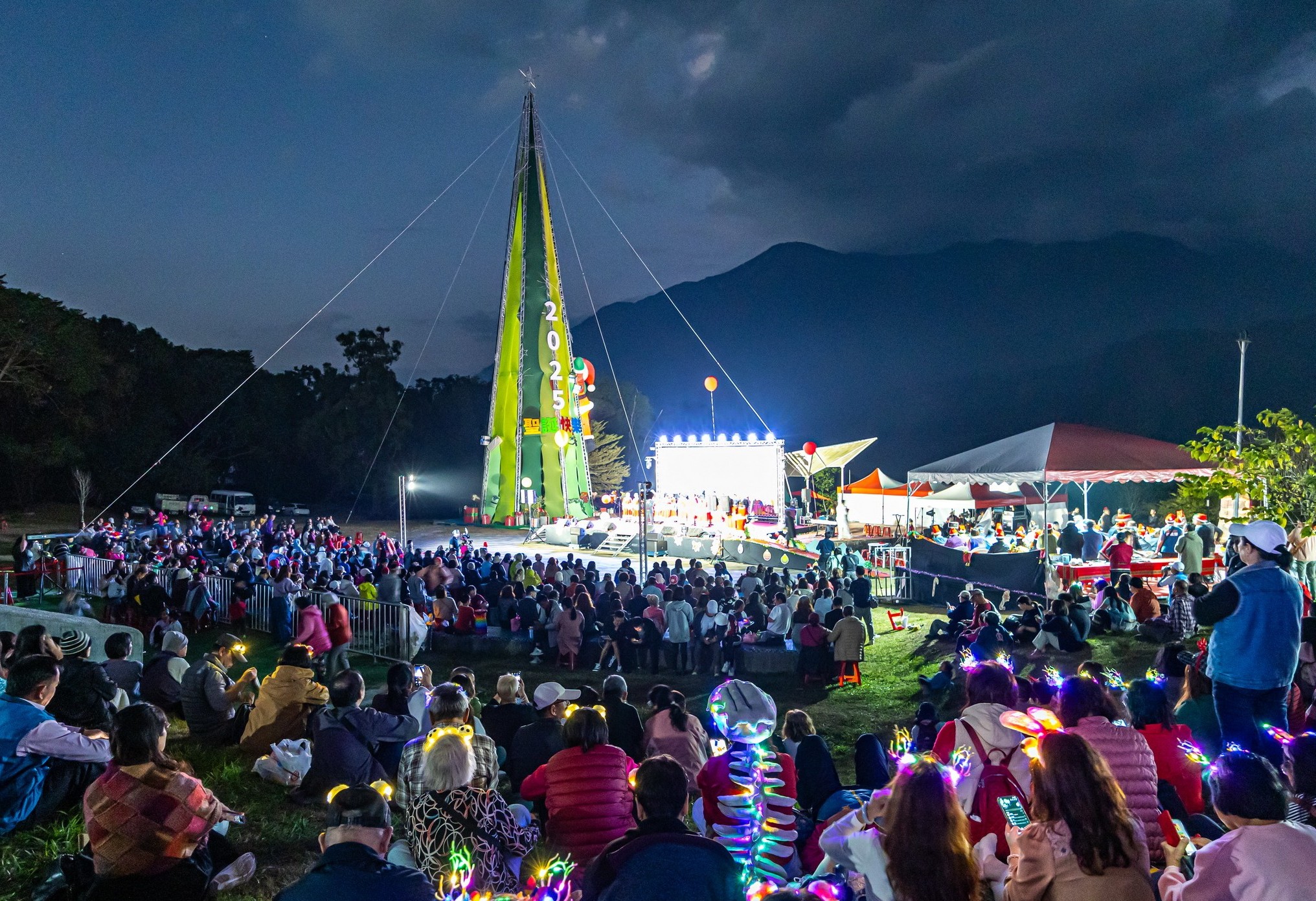 許縣長為信義鄉羅娜聖誕樹點燈 與遊客共度歡樂平安夜 2025南投花卉嘉年華系列活動-信義鄉羅娜聖誕活動,24日晚間在羅娜村羅娜文化景觀園區盛大展開,除有27公尺高的閃亮聖誕樹,還有沿著部落大街打造的燦爛燈海隧道,加上精彩節目連串的天主堂聖誕晚會及火把部落巡禮報佳音等特色活動,吸引大批人潮湧入,縣長許淑華與信義鄉長全志堅帶領貴賓們共同點亮聖誕樹主燈,互相高聲祝福聖誕快樂。