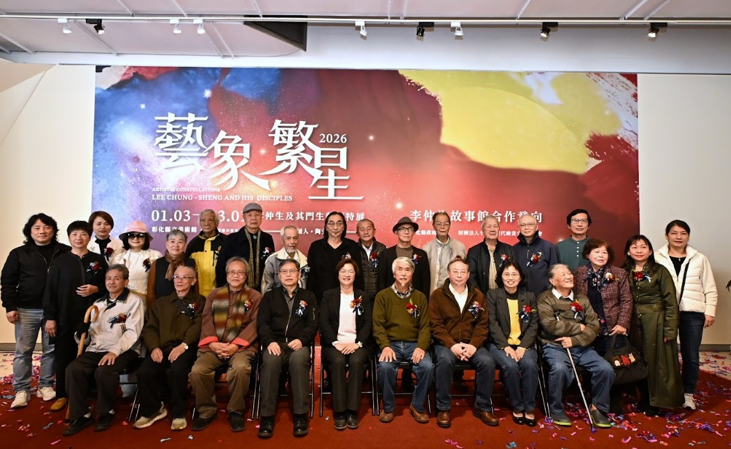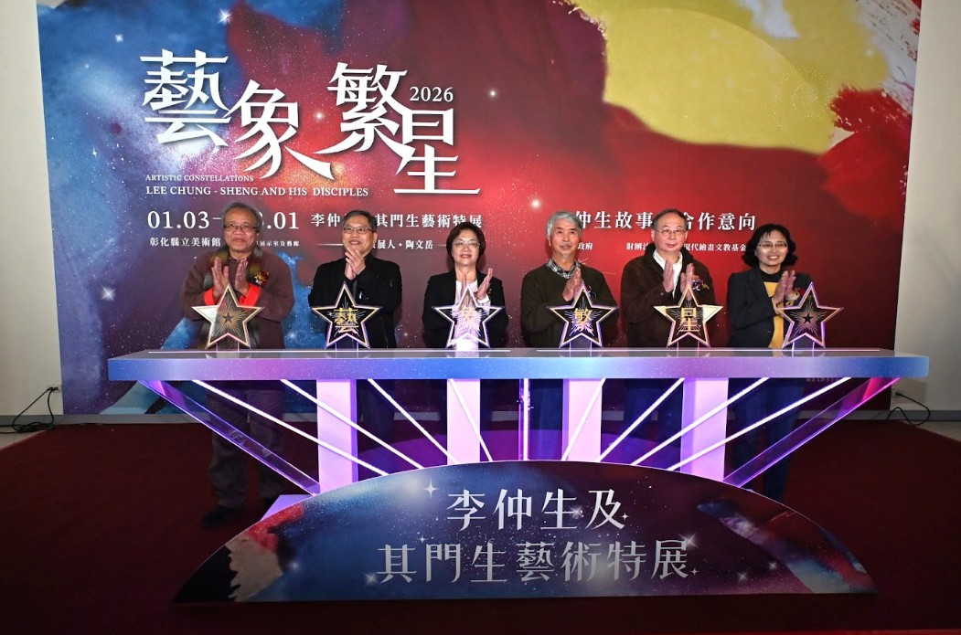 「藝象繁星-李仲生及其門生藝術特展」即日起至今(115)年3月1日在縣立美術館盛大展出。今(6)日上午舉行開幕記者會,彰化縣長王惠美、國立臺灣美術館汪佳政副館長、財團法人李仲生現代繪畫文教基金會董事長黃步青、策展人陶文岳教授、參展藝術家等人與會。王縣長表示,本展覽除展出已逝藝術家李仲生油畫、水彩、素描與珍稀手稿等共42件作品外,更邀請47位門生每人提供1件作品參展,全展共計89件作品,呈現李氏藝術在不同時期的演化,更於展場重現「一對一咖啡館教學」情境,使民眾得以貼近李仲生與弟子互動的精神風貌。