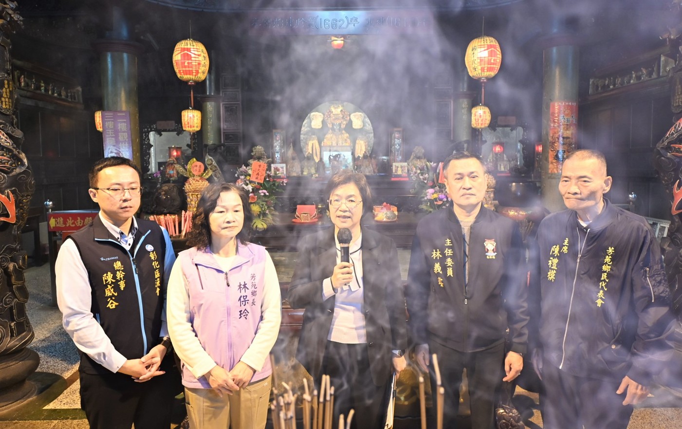 與會貴賓還有芳苑鄉長林保玲、芳苑鄉代表會主席陳禮模、副主席林清在、立委謝衣鳯服務團隊、立委陳素月服務團隊、縣議員洪騰明服務團隊、縣議員吳淑娟服務團隊、縣議員洪子超服務團隊、縣議員張國棟服務團隊、王功福海宮主委林義璿、彰化區漁會總幹事陳威谷、芳苑農會總幹事洪翊桓、彰化縣養豬協會理事長陳筆輝、縣府農業處長郭至善、各級民代與地方仕紳等。