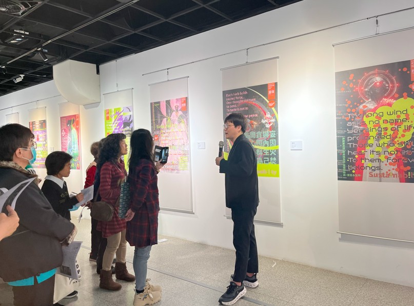 在視覺語言上,本展作品融合未來感造型、數位化質地與程式化結構,將傳統文化符碼轉譯為介於生命體、科技想像與符號系統之間的混合狀態,故作品不再只是形式美感的呈現,而是作為一種批判性視覺文本,引導觀眾在熟悉的文化結構中,重新思考環境倫理、社會責任與人類在宇宙尺度中的位置。