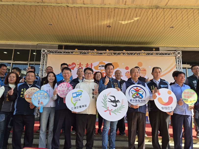 彰化縣政府為照顧民眾搭乘公共運輸需求,打造完善交通環境,積極推廣幸福巴士業務,協助大村鄉公所向交通部公路局提報「115 年度公路公共運輸永續及交通平權計畫-幸福巴士計畫」,公所今(11)日於公所前舉辦「2026大村幸福啟航-幸福巴士啟用典禮」,由大村鄉長賴志銘、彰化縣政府參議柯呈枋、彰化縣政府交通處處長臺中區監理所所長楊聰賢、彰化監理站站長黃建興等貴賓共同出席典禮,並與貴賓們共同宣告將從2月23日開始通車,為大村鄉提供更為便捷之交通。