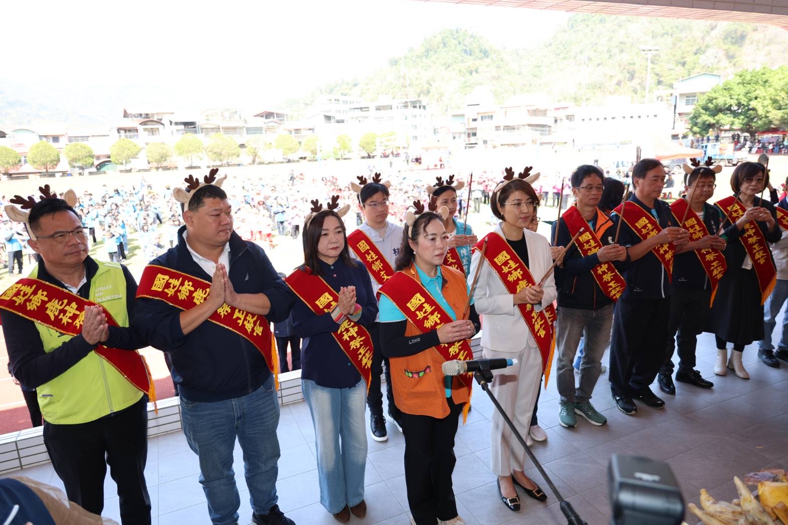 2026年國姓鄉「鹿望山城.共織客夢—2026年國姓鄉鹿神祭產業文化活動暨國中/小學聯合運動會」14日在國姓鄉北山國民中學及北山南天宮前廣場熱鬧登場;活動由熱鬧的「鹿神遶境」引領群眾走入山城拉開序幕,隨後在國姓鄉長邱美玲、縣長許淑華、立委馬文君、游顥、國姓鄉民代表會主席賴權藝等人帶領陪祭人員依古禮完成莊嚴的「鹿神祭典儀式」帶動活動第一波高潮。中午,鹿茸養生宴在南天宮廣場席開80桌,台灣區南投縣同鄉會聯合總會總會長林哲生也帶領所屬代表返鄉參與,認養35桌體驗鹿茸宴,讓旅外鄉親感受鹿茸產業舌尖魅力;在精彩表演及摸彩等節目中,「十全鹿茸雞」等十道結合在地物產的創意佳餚陸續上桌,融合客庄風味及鹿茸養生概念美好風味,讓與會饕客讚不絕口。