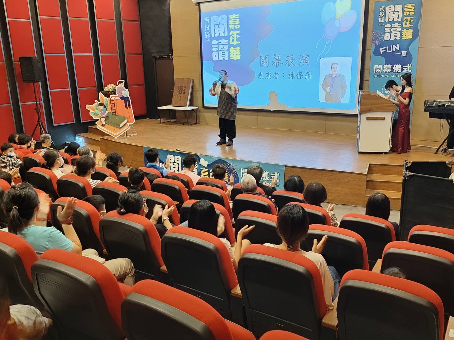文化局29日上午10時,在圖書館七樓舉辦2024南投縣閱讀嘉年華Fun一夏開幕儀式,活動採事先報名制,當日民眾只要全程參與開幕式活動即可獲贈限量參加禮,開幕式邀請南投縣社會及勞動處、衛生局及家庭教育中心共同設置活動攤位,安排闖關兌好禮活動,民眾於開幕式活動結束後可領取闖關卡至各樓層參加闖關活動,凡至各關卡完成指定任務即可獲得各關卡限量小禮物,並於當日完成一次借閱30本書任務,除可至一樓服務台領取摸彩券乙張參加抽獎外,完成各關卡可再獲贈完成通關限量小禮物,不少民眾大手牽小手,一起進圖書館,閱讀拿好禮。