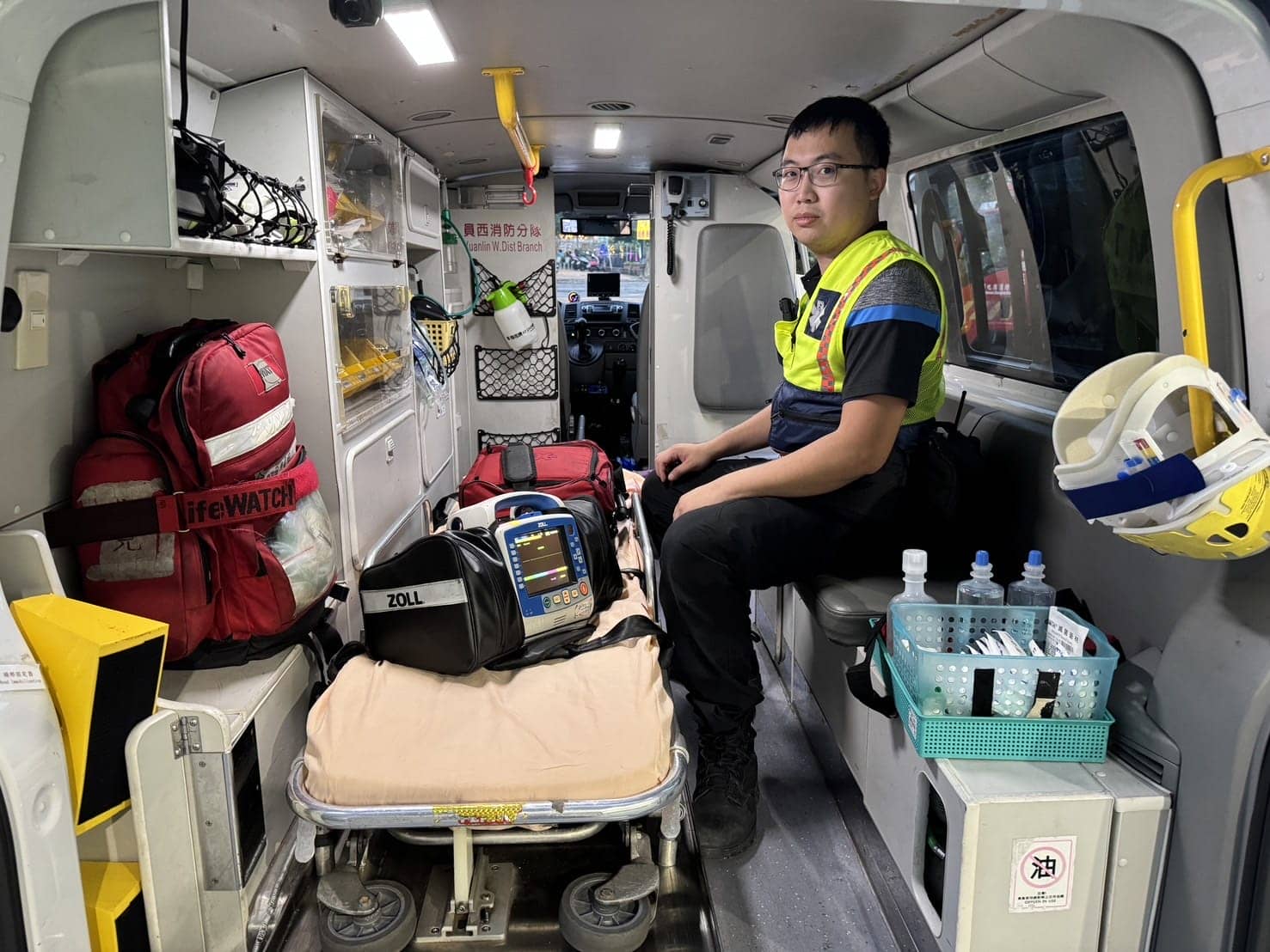 林冠華說,讓他印象最深刻的案件是5年前人生出勤的第1件OHCA (到院前心肺功能停止)案件,在出勤前勤務中心已預通告是OHCA案件,因此在救護車上便不斷的在腦海中複習平時訓練時再熟悉不過的OHCA處置流程,到達現場後,在分隊學長的指揮分工下,協助貼好AED貼片及架設LUCAS(自動心肺復甦機),迅速將患者送往醫院,途中持續給予患者電擊及生命徵象評估,在返回分隊之前就得知患者已成功恢復生命徵象,並於5天後康復出院,讓他感到相當有成就感,心中的感動不可言喻!