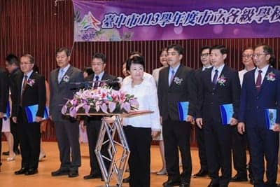 台中市立各級學校及幼兒園校(園)長布達交接典禮(1)日在市政大樓4樓集會堂舉行,新學年度獲遴聘校(園)長共75位,其中連任校長21人、調任校長35人及初任校(園)長19人。「任重道遠!」市長盧秀燕到場時指出,感謝退休校長對教育的貢獻,也期勉連任、調任及初任校長持續恪守崗位辦好教育,培養更多優秀人才。