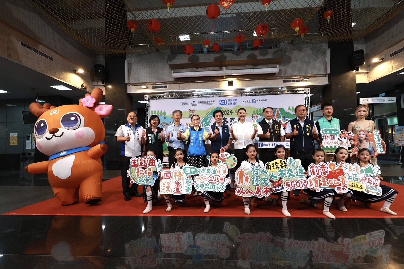 縣府21日在縣府一樓大廳舉辦?2024南投縣人本交通及校園教育宣導」宣傳記者會,由縣長許淑華及內政部國土管理署中區分署副分署長黃永興一同主持,會中許縣長開箱?2024南投縣人本交通及校園教育宣導」系列活動多元特色,並與貴賓一同宣布活動於8月23日起正式開跑。會中也發表吉祥物「這投鹿」,人本交通宣導大使南投新生代流行歌手Jocelyn9.4.0也親自演唱為南投縣人本交通創作的主題曲,過程熱鬧隆重。