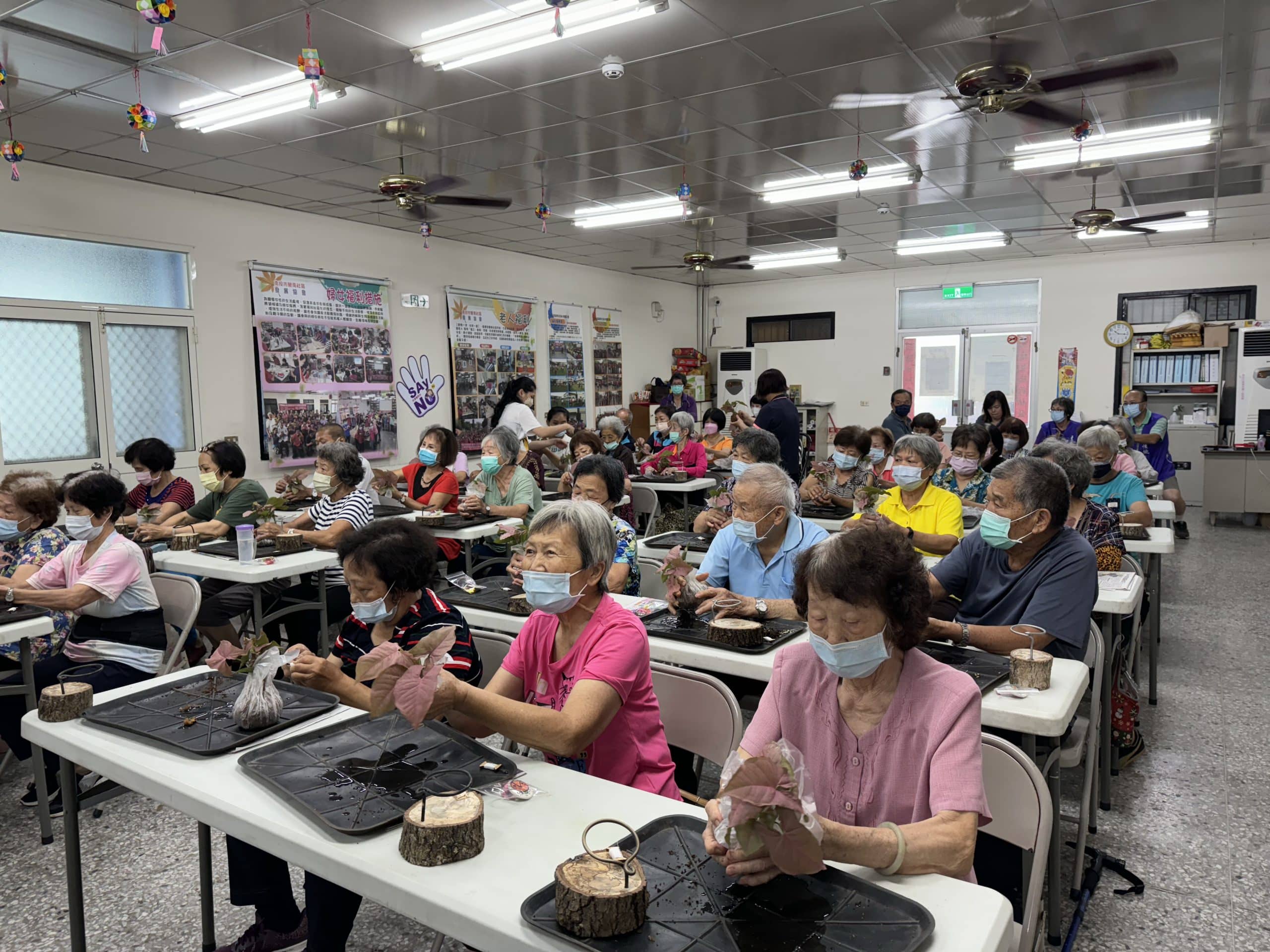 近年投縣人口有高齡化趨勢,經研究結果顯示,參與園藝治療活動後,長者的生活滿意度及心理健康主觀感受皆會提升,有助於對失智症的預防。縣府結合綠美化業務與巷弄長照站,透過植栽手做課程來啟動人與自然連結的本能,在8月9日、8月12日、8月16日及8月28日分別於南投市營南社區、鳳山社區、名間鄉松嶺社區及南投市福山社區辦理4場手作苔球及蘭花上板活動,有超過200位阿公阿嬤共同參與,活動現場氣氛歡樂,阿公阿嬤各個活力十足,在被旁人稱讚當下,阿公阿嬤笑的好滿足的歡喜,其中最高齡105歲阿嬤很開心的不斷說著下次還要再來參加。