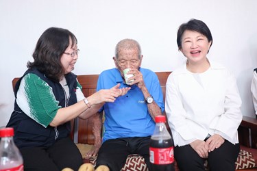 此外,由於盧市長聽說阿公在早餐時段喜歡吃5顆芝麻湯圓、稀飯配草莓果醬,還特別愛喝可樂,因此她今天特別帶可樂來拜訪;由於市長自己也是可樂的忠實粉絲,以往營養師或衛生局都會勸她少喝一點,今天她很高興找到知音了。