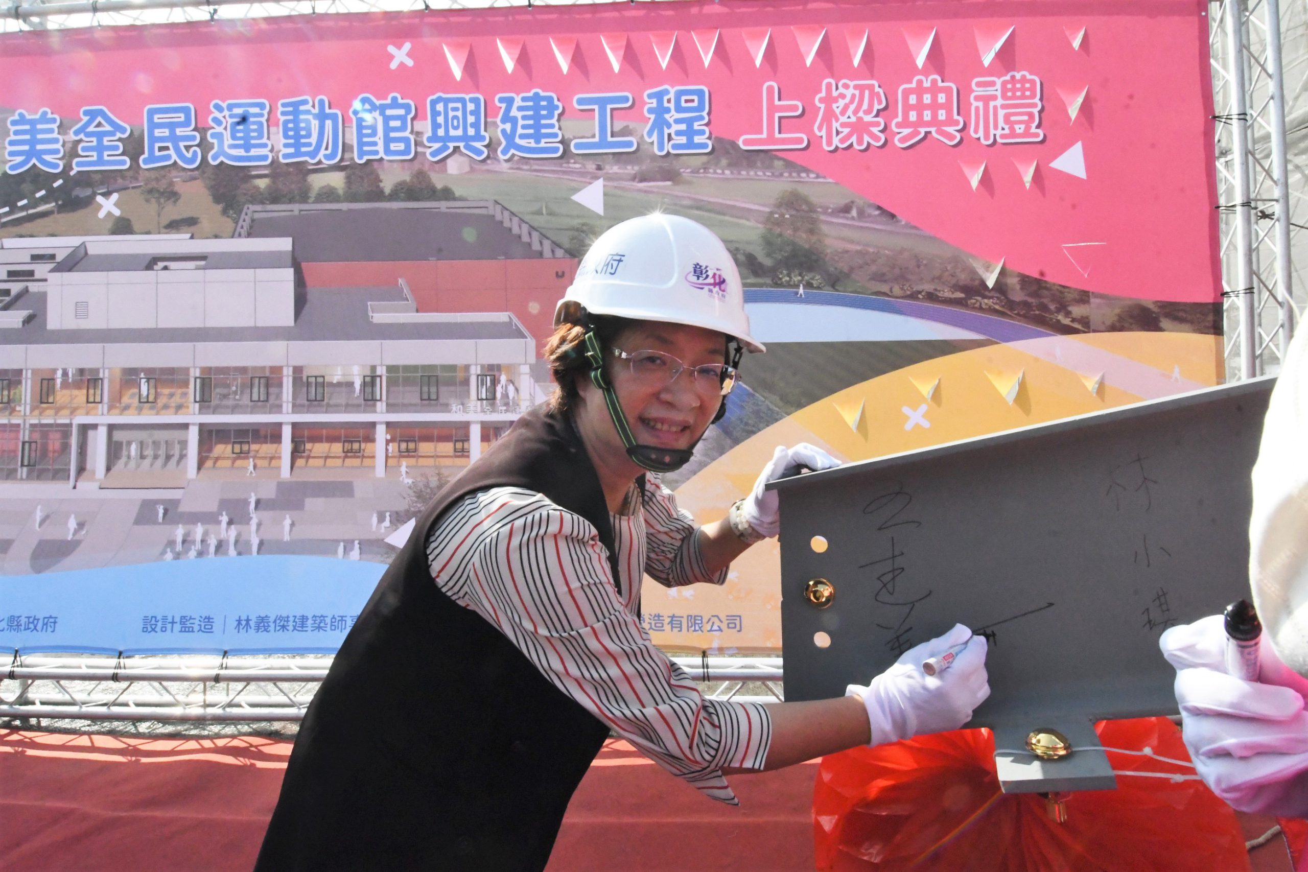 彰化縣第三座運動中心,「和美全民運動館」(4)日上午在和美鎮調興段634、1152及1153地號舉行上梁典禮,彰化縣長王惠美與各級民意代表一同出席,共同祈願興建工程順利完成,施工安全圓滿。王縣長表示,有健康的身體,才有美好的未來;沒有健康的身體,什麼都沒有。大家引頸期盼的和美全民運動館,終於要上梁了,特別感謝中央教育部補助1億元,感謝議長謝典林和所有議員對預算的支持,縣府投入2.5億元,合計總經費約3.5億元,興建「和美全民運動館」,總佔地面積約為3公頃,主體建築佔地約1.67公頃,設計上,加入和美織仔的元素及考量在地居民的需求與使用習慣,規劃室內游泳池(含SPA)、籃球場、羽球場、體適能中心、桌球館、韻律教室等六大核心設施及戶外田徑場,並搭配相關附屬設施,截至10/31 日預定進度 50.4%,實際進度 58.6%,超前8.2%,預計於114年9月完工,期待如期如質,盡早完工,屆時運動館將成為鄉親們「親和、友善、優質」可以來運動健身的好鄰居。