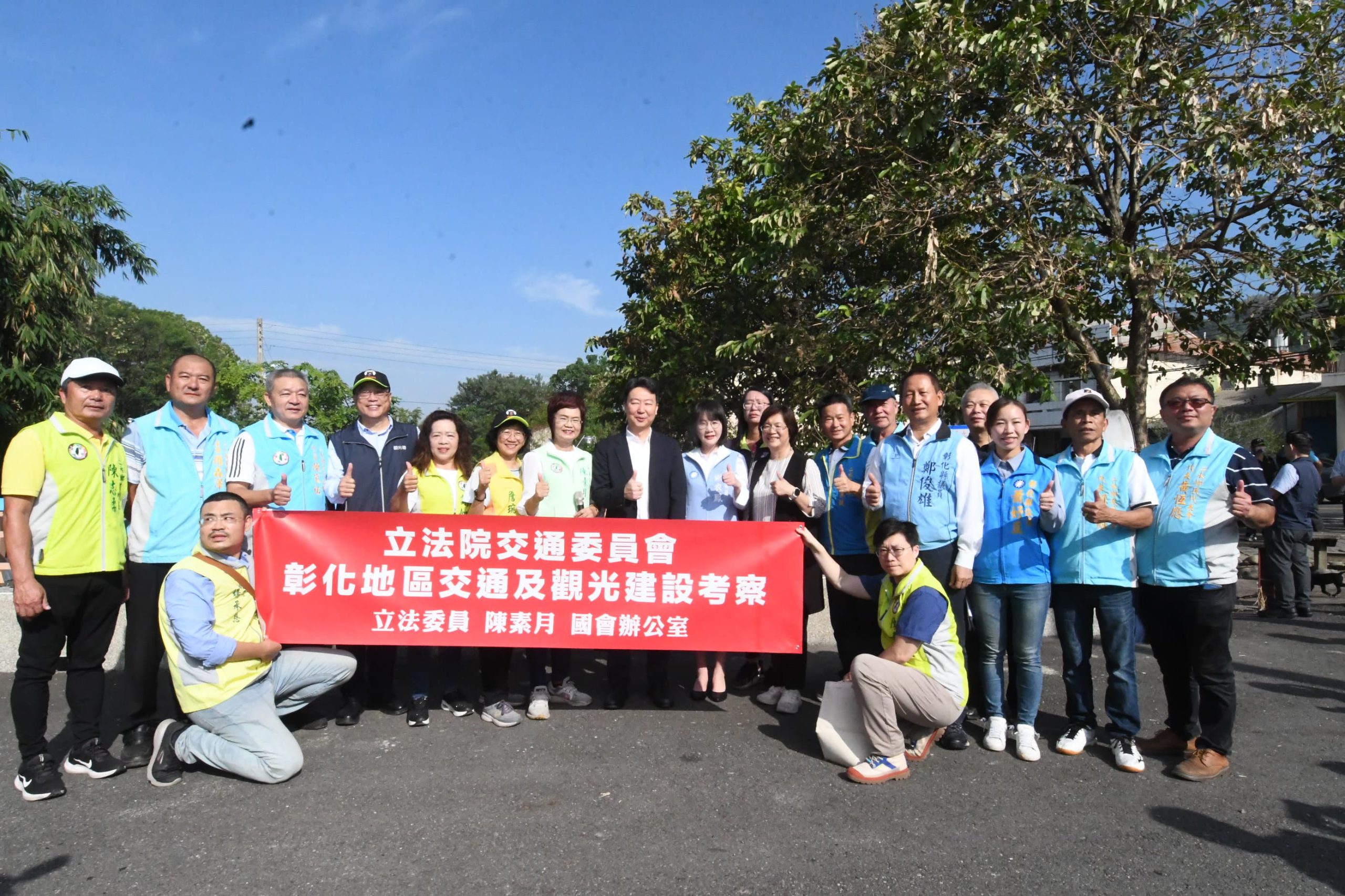 立法院交通委員會考察彰化地區,彰化縣長王惠美(右六)現場視察人員有交通部長陳世凱、觀光署長周永暉、路政及道安司司長黃運貴、立法委員陳素月(左七)、謝衣鳳(右七)、立法院交通委員會專門委員李健行、縣議員鄭俊雄、蕭妤亘、詹琬惠、二水鄉長蘇界欽(右五)、農田水利署彰化管理處長徐瑞旻、城觀處長王瑩琦、新聞處長李俊德。(記者蔡鳳凰攝) 14日立法院交通委員會考察彰化地區交通及觀光建設,彰化縣長王惠美、立法院交通委員會召委陳素月、立委謝衣鳳、交通部長陳世凱與各級民代等人,前往二水鄉考察「二水鄉復興村八堡一圳水岸廊道串連建置工程進度」,王縣長表示,特別感謝立法院交通委員會召委陳素月委員邀集交通部長陳世凱帶領相關部會長官,以及各級民代共同關心彰化東南角觀光廊道的建置,彰化有一條羊肉爐大道串連溪湖及溪州的糖鐵國家綠道,總長15.5公里,這次「八堡圳水岸廊道」,從田中高鐵站串連至二水鄉,第一案1.3公里已核定優先打通,期待能爭取到八堡一圳第二案、第三案及全線串聯優化計畫,打通二水鄉、田中鎮、社頭鄉到員林市,總長29公里的水岸廊道,全面建構這條東南角最重要的自行車觀光廊道完工後,帶動觀光遊憩發展,讓彰化更好。