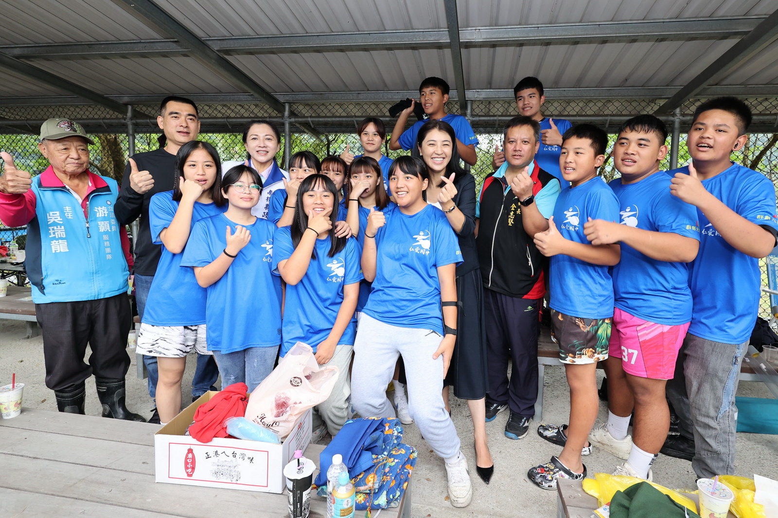 來自全國各地國小、國中及社會組約300多名選手齊聚一堂,在人和部落大秀精湛技藝,縣長許淑華(右五)由信義鄉長全志(右四)堅、信義鄉體育會理事長全文才議員、縣府原民局代局長林婷玉陪同出席開幕儀式,為選手加油打氣 。(記者梁明善攝)