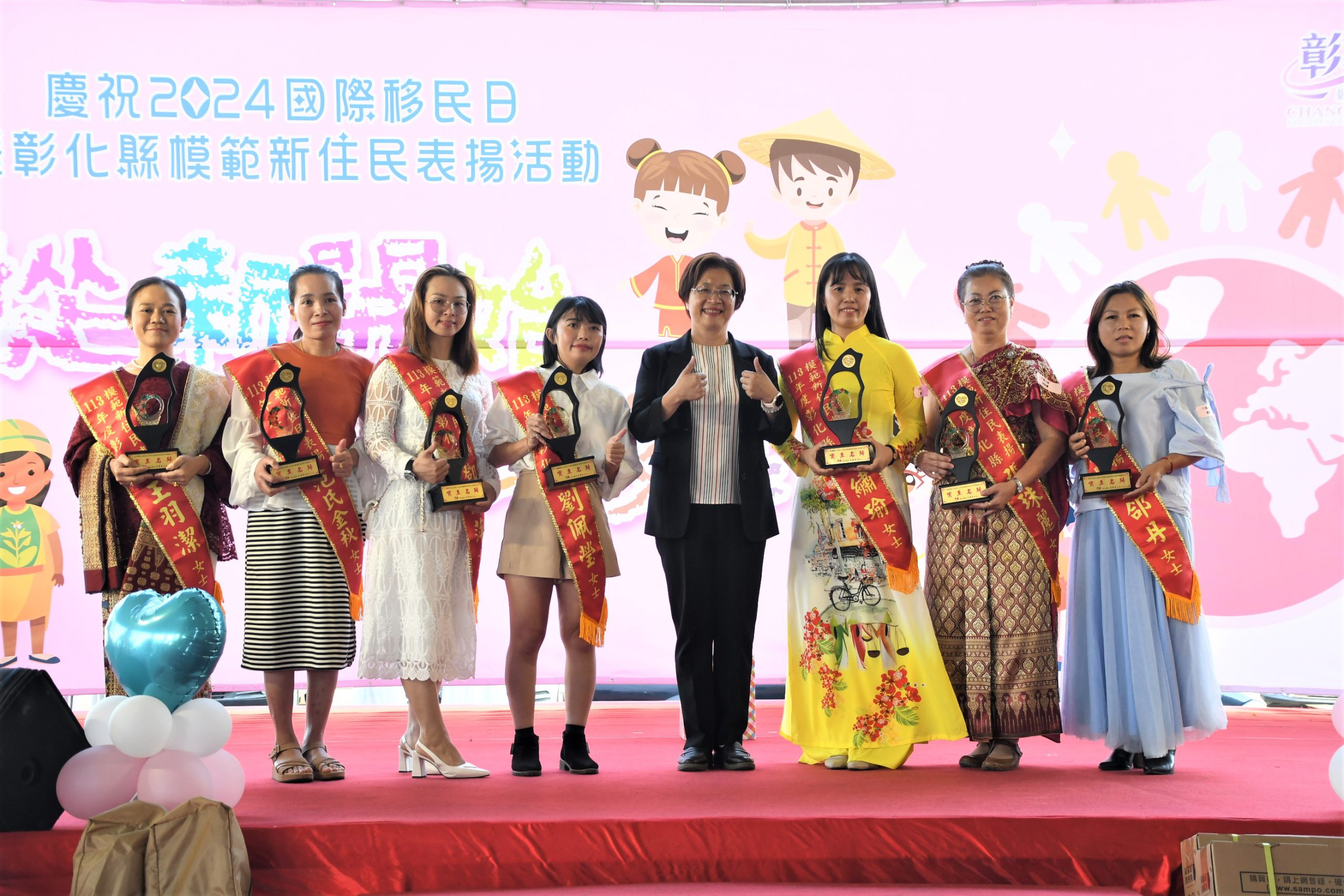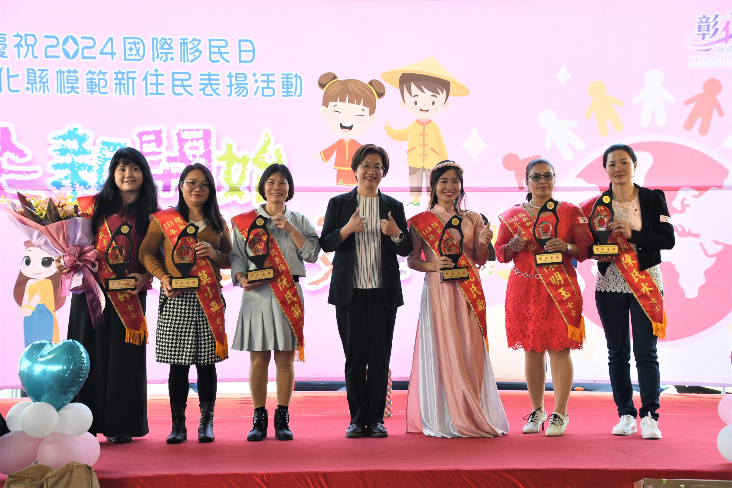 從新開始,精彩移生!彰化縣表揚模範新住民,共創多元共融社會,彰化縣政府今(1)日下午在社頭果菜批發市場辦理「慶祝2024國際移民日暨彰化縣模範新住民表揚活動」,縣長王惠美出席表揚,並邀請受表揚人及其家庭成員於社頭禾嘉園餐廳參與楷模餐會,王縣長表示,愛無國界!12月18日是國際移民日,縣府響應節日,提前舉辦與新住民朋友們同歡,今年彰化縣的新住民人口正式突破了2萬5千人,來自世界各地的新住民朋友們,帶著不同的文化背景、生活經歷,克服語言及文化差異融來到彰化,把彰化當成第二個故鄉,這次表揚由各鄉鎮市公所及社團、網絡單位推派出線的24組模範新住民家庭及14組新住民楷模,現場星光熠熠,齊聚一堂,不僅是彰化縣多元文化的代表,也是寶貴資產。
