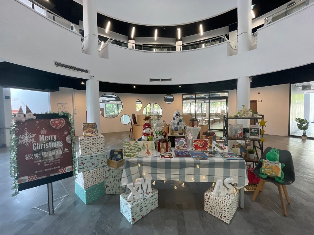 臺中市立圖書館霧峰以文分館及興安分館,精心安排應景的耶誕主題書展,從有趣好玩的童話繪本到寓教於樂的節慶故事書,為小書迷們打造一場書香四溢的聖誕閱讀之旅。在閱讀耶誕主題書籍的同時,還可參加「喜閱聖誕,讀家好禮」活動,自12月3日起,只要憑中市圖的個人卡及家庭卡借閱證借書,現場借10本書並集滿一定閱讀點數即可至各分館兌換限定聖誕好禮,其中最吸睛的非「行動圖書車形象襪」莫屬,其設計靈感來自於圖書館的第2部太陽能行動圖書車,以黃色車底象徵豐原地區結實纍纍的稻米,紅色方格代表活力與糕餅象徵,十分討喜。
