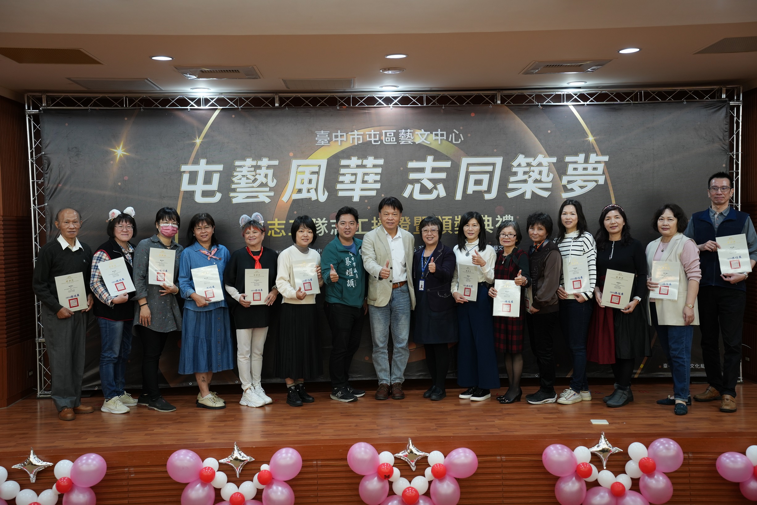 臺中市政府文化局副局長曾能汀指出,屯藝中心志工隊自98年成立至今,已邁入第16年,現有志工夥伴共130位,其中服務年資超過十年的志工將近半數,展現出強大的向心力與穩定的團隊力量。感謝志工夥伴積極投身文化事務,與屯藝中心合力推動地方文化的蓬勃發展,為臺中貢獻重要的力量。