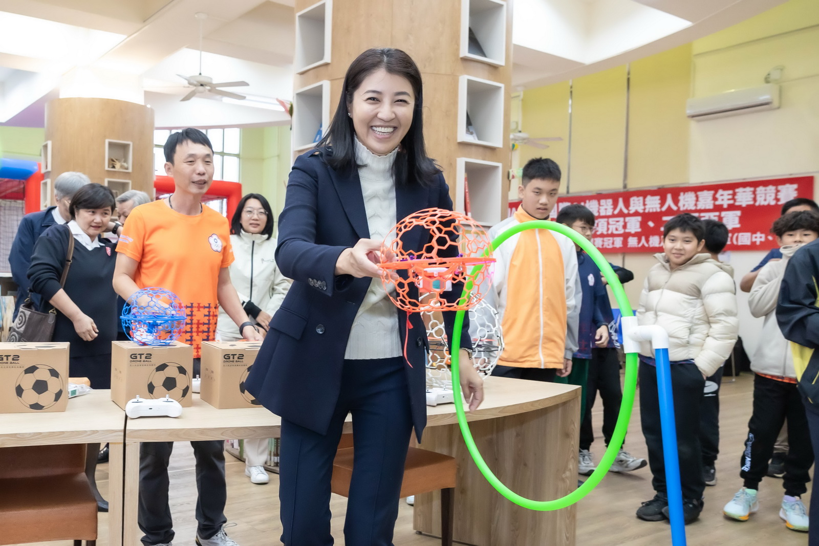 南投縣埔里國中、溪南國小、南投國小與新街國小學生,在馬來西亞舉行的「2024 UASACT奧賽特AI機器人與無人機國際賽」,勇奪4項冠軍2項亞軍!縣長許淑華16日特別在埔里國中表揚並嘉許獲獎學生,並與學生體驗「無人機釣魚」、「無人機關卡任務」、「無人機足球」3項競賽的樂趣。
