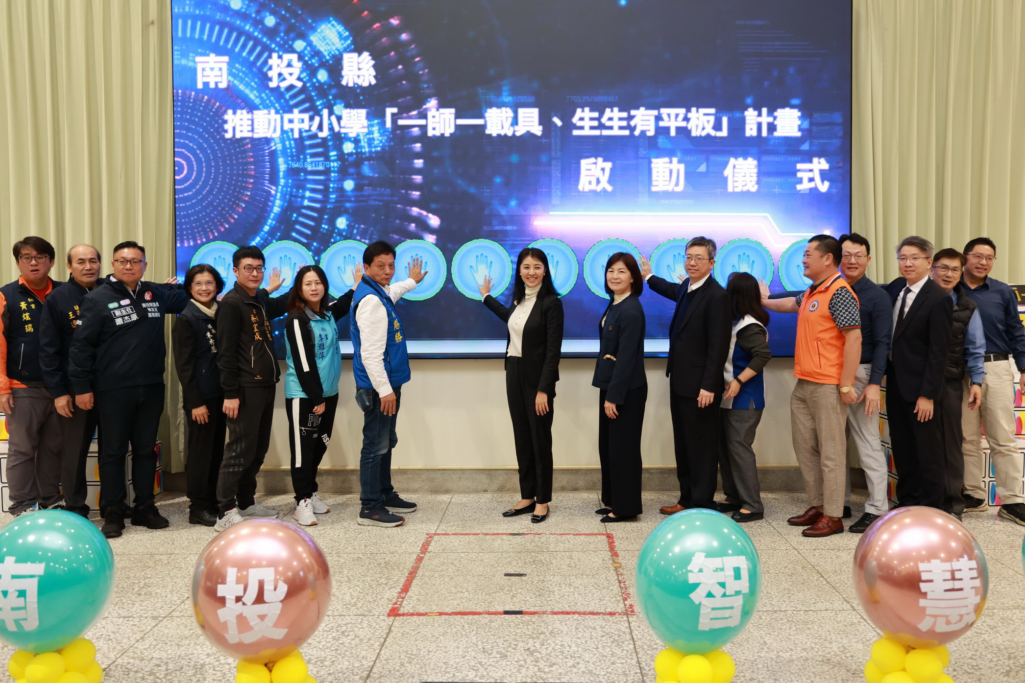 因此,113年度縣府已採購了3,777台平板,配發給全縣的非偏遠地區學校的老師們,是全國第一個達到全縣中小學教師一師一載具的縣市。目前南投縣學子已超過6成使用平板進行學習,後續會編列預算加速補足非偏遠地區學校的學生用平板,確保我們就讀國中小學的每一位孩子都能夠配發一台專屬的平板進行學習,藉由大屏教學及平板學習,相信可以讓孩子學習力更為集中,成效越來越好。感謝縣議會議員全力支持,讓縣府能大力投入校園軟硬體建設,完備數位載具需求,激勵孩子學習成長,也讓老師能全力投入教學,南投雖是偏鄉,但我們在教育的投資絕不手軟,請家長放心將孩子交給學校。