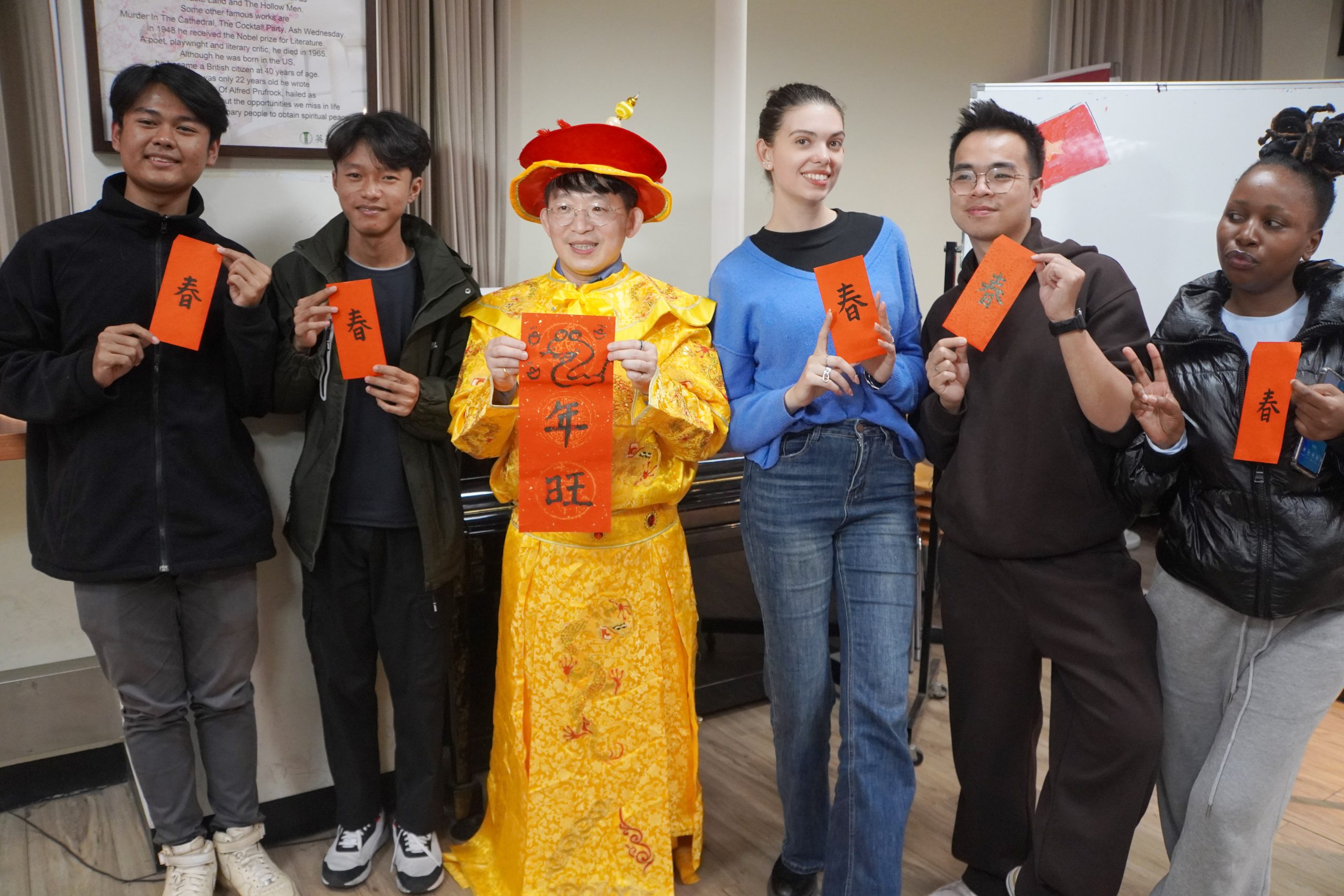 大葉大學華語教學中心舉辦農曆新年文化體驗活動,設計學系教授鄧婉玲帶領來自法國、史瓦帝尼、印尼、越南、日本、香港等國家的國際學生寫春聯,學習新年的吉祥話,國際語言中心副主任陳俊福發紅包給學生,祝福學生們在新的一年萬事如意,境外學生開心體驗台灣的年節習俗,感受濃厚的年味。
