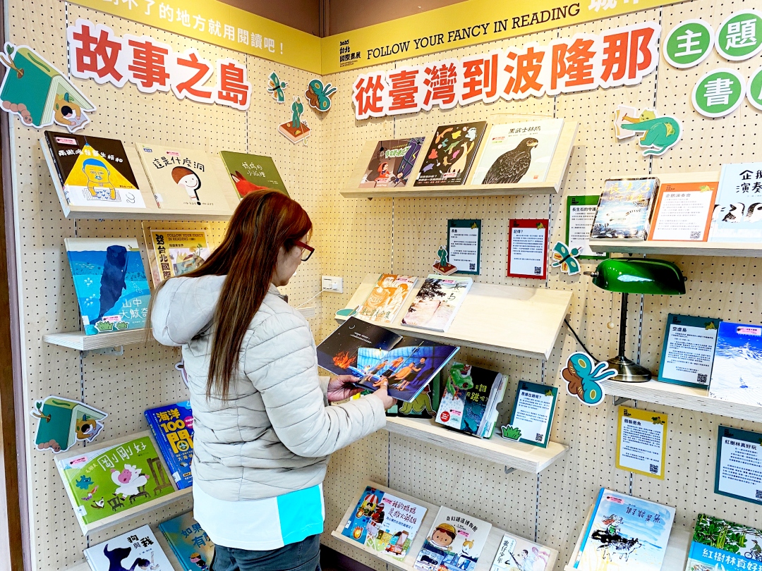 中市圖表示,為呈現臺灣創作躍上國際舞台,特別精選「義大利波隆那兒童書展」臺灣館的書籍共60本,規劃「故事之島:從臺灣到波隆那」主題書展。以「Taiwan Story Island」(譯:臺灣故事島)為主題,書展分為「海洋」、「年度推薦書」兩大主題,展現臺灣原創書籍豐富多元的創作能量。書展於總館及分館共12館同步展出,歡迎民眾到圖書館翻閱原創故事,品讀臺灣之光。