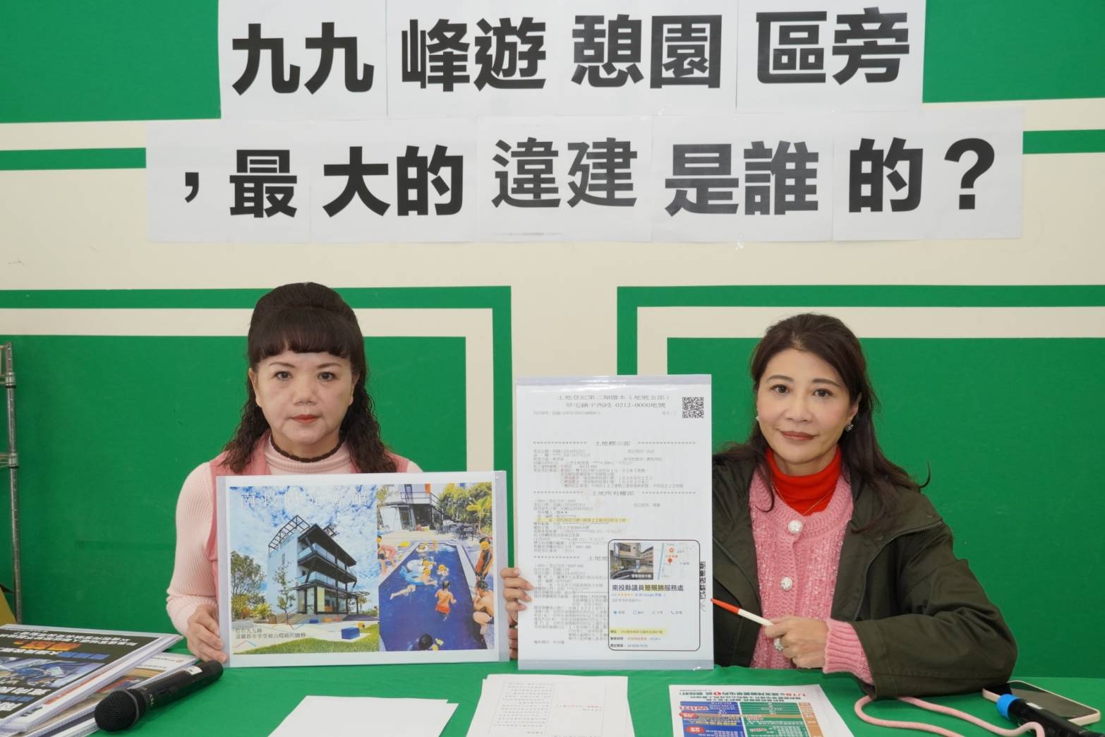 民進黨在記者 會中由林楚茵表示,國民黨候選人簡賜勝提出的政績中,有一項九九峰的建設,予人懷疑這項政績是自己爭取、自己標,左手通右手。表示最近又接獲到民眾舉報,發現有一棟招待所『陽光會館』落座於九九峰遊憩園區旁。經過謄本調查,發現土地為農牧用地,所有權人姓簡外,所有權人的住址正落座在『總福營造』的總福會館內。