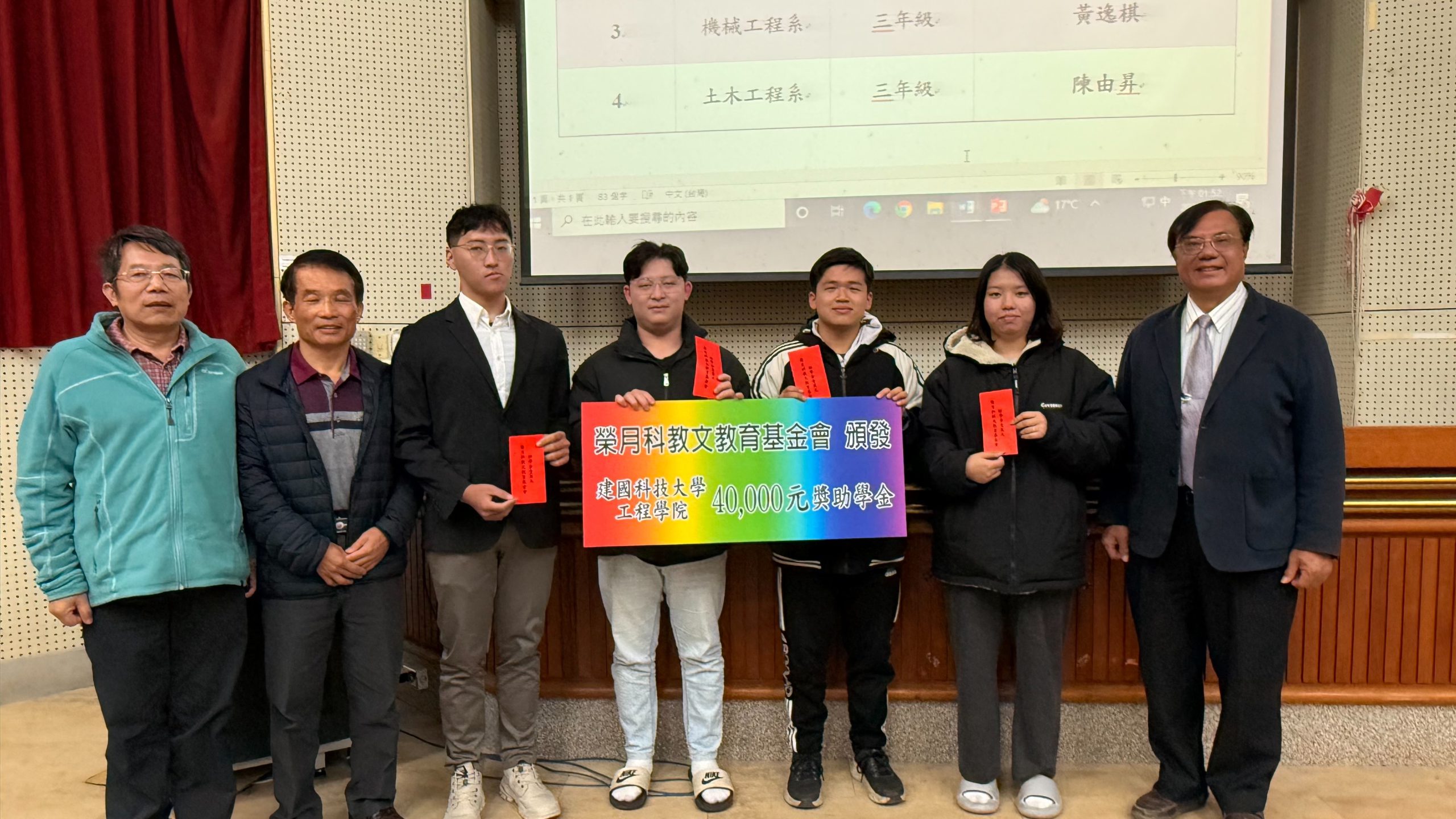 本次得獎的有18名,包括中興大學、成功大學、崑山科大、建國科大、吳鳳科大,嘉義六美國小,共計18位得到捐助,其中有本地生,也有6位印尼、越南籍的學生得獎。
