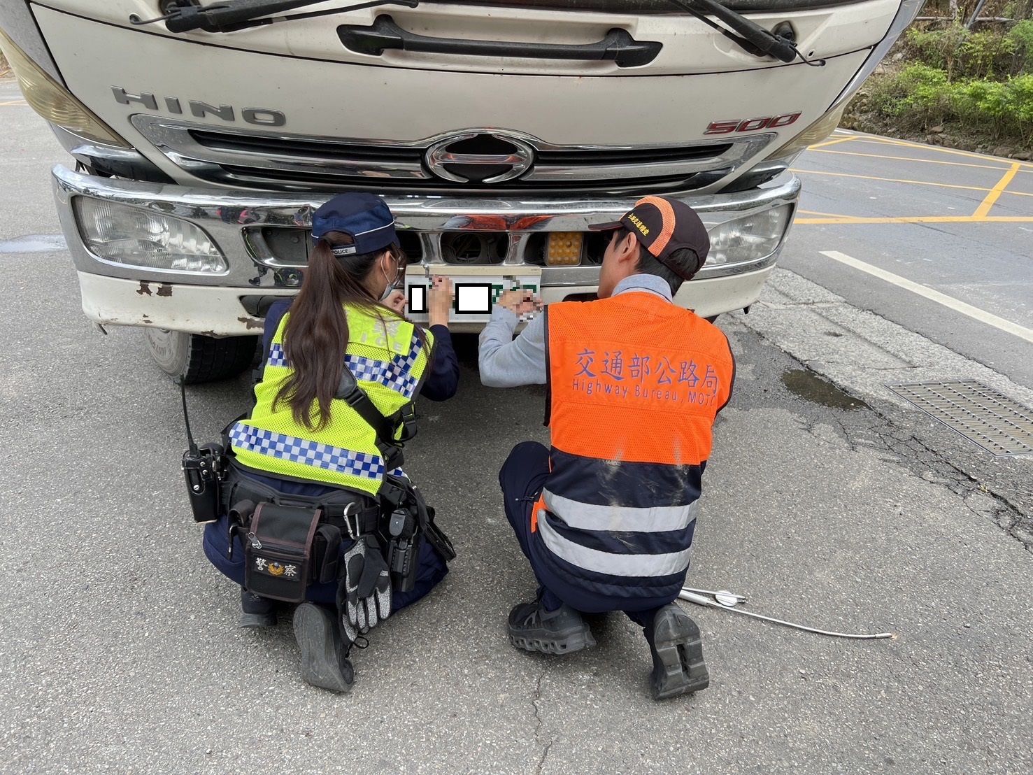 南投監理站表示,113年12月份配合南投縣政府警察局埔里分局執行淨牌專案勤務時,查獲1大貨車懸掛他車號牌,經本站同仁發現該車牌有諸多明顯瑕疵且該牌照狀態為吊扣中,再核對引擎號碼及車身號碼發現該車體正因酒駕吊扣中,因此研判為偽造號牌,現場依道路交通管理處罰條例第12條第1項第3款開罰,並將車輛移置保管及扣繳其牌照,駕駛人部份警方依據相關規定送刑事案件審理。