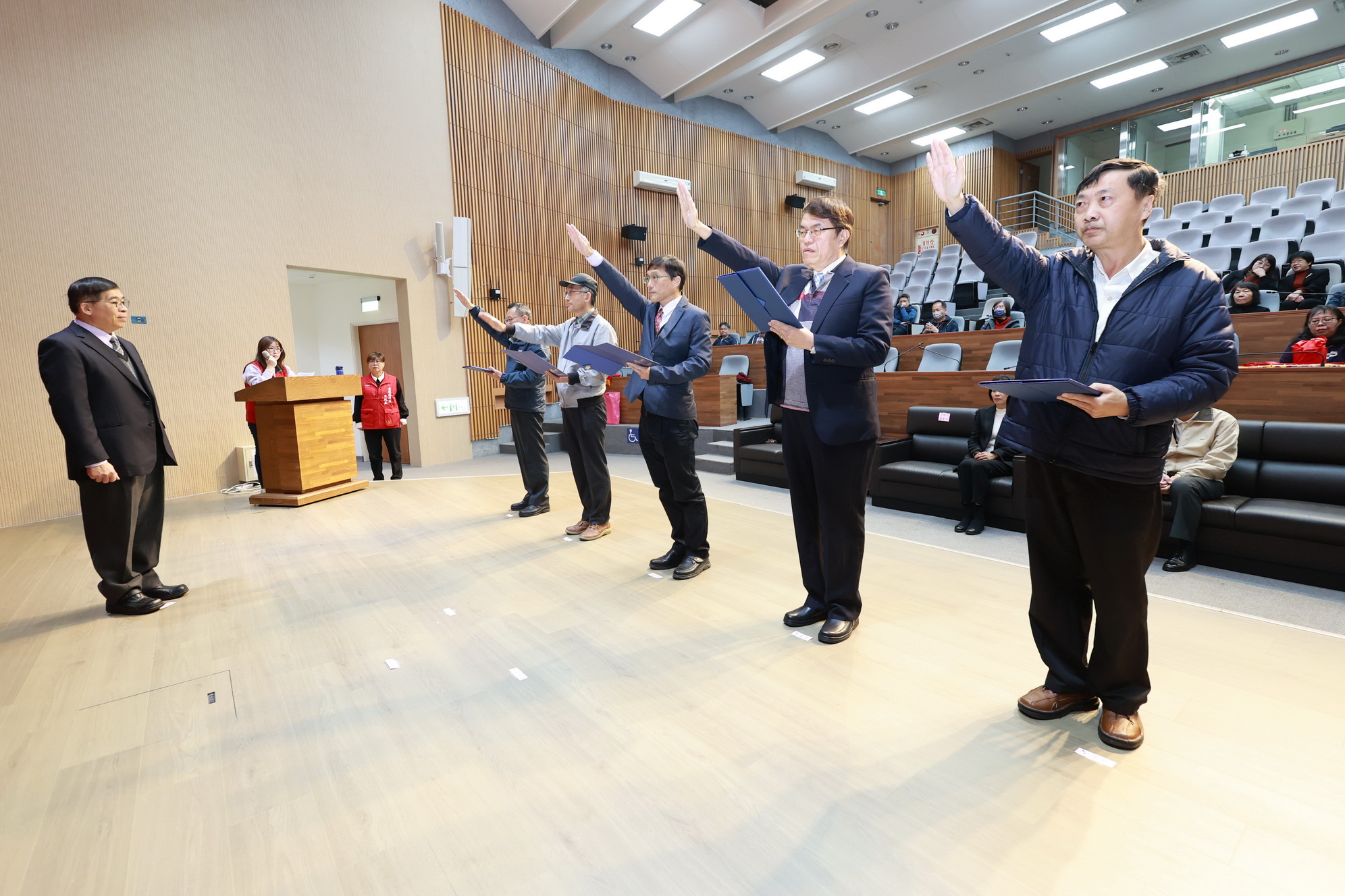 洪秘書長說,戶政事務所是貼近民眾之第一線為民服務機關,平時受理縣民申請各類戶籍登記及身分證、戶籍騰本、印鑑證明等戶籍文件核發業務,親切的服務態度及更為便捷、親民的資訊化推動,使各項服務品質大幅提升,獲得縣民高度肯定。歷年來亮麗的工作成果,無論大小,都凝聚著每一位同仁的心血與努力,而這一切,也正是我們團隊精神與專業能力的體現。 此次宣誓就職交接5個鄉鎮市戶政事務所主任,都是戶政老兵,不論是即將退休的主任或調任新崗位的主任,都相當傑出,尤其是屆退的中寮鄉戶政事務所主任曾志良在戶所的工作中,無論是業務 運營還是團隊協作,都表現得無比出色,足為戶政同仁楷模。