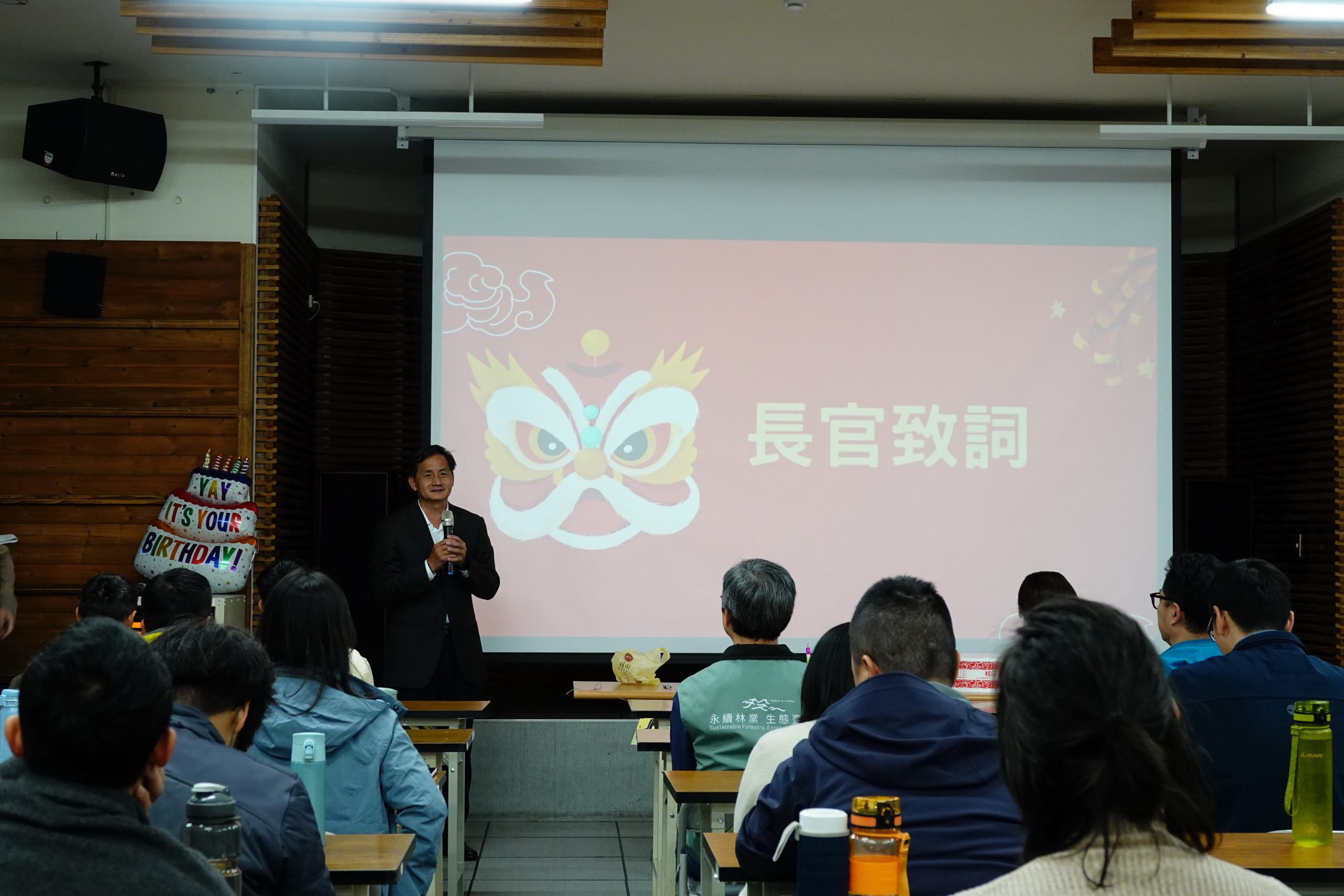 活動開場由分署長李政賢致詞,為全體同仁送上新春祝福。他勉勵大家在新的一年裡,繼續以熱忱投入工作,共同努力實踐「永續林業‧生態臺灣」的願景。同時,介紹新進同仁,歡迎他們加入南投分署的大家庭。
