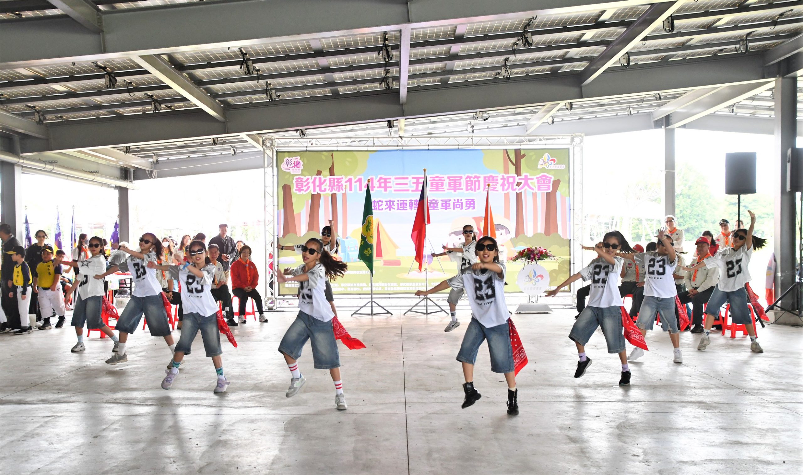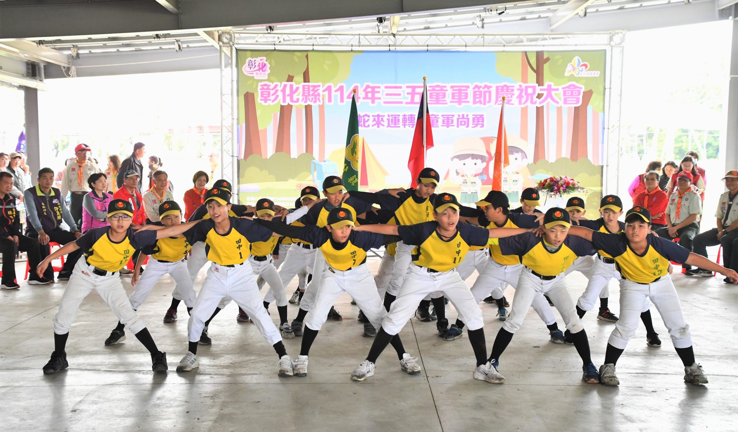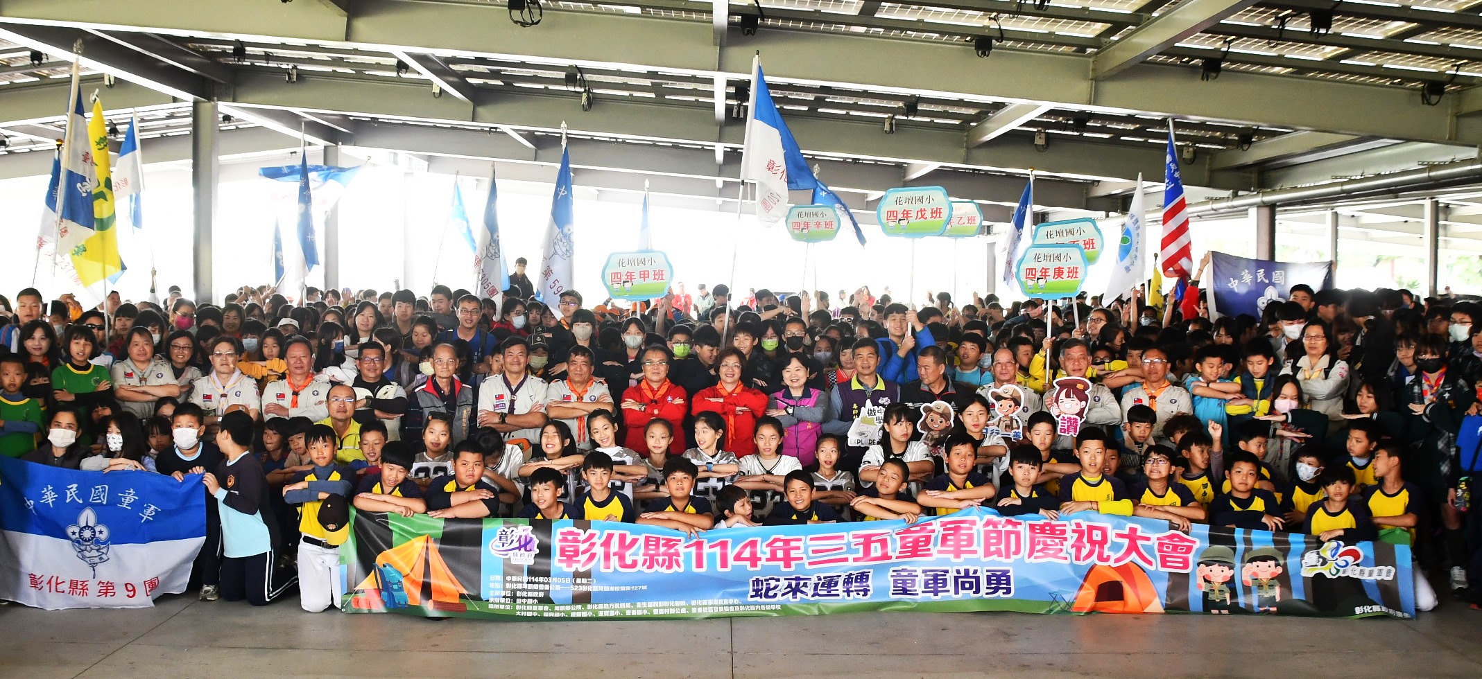 「蛇來運轉 童軍尚勇」,彰化縣政府(5)日上午於埤頭鄉豐崙公園舉辦「彰化縣114年三五童軍節慶祝大會」,縣長王惠美等人與會,今年活動吸引來自全縣各級學校的童軍團與服務人員約1,300人參加,現場頒發彰化縣各級童軍獎章、績優童軍團表揚及吳兆棠博士紀念獎學金,感謝所有童軍夥伴與團隊的辛勤付出與貢獻。王縣長表示,彰化縣深耕童軍教育,培養學生多元發展與創意思維,多元推動品格教育,進而帶來正能量,這次活動在埤頭鄉舉辦,結合在地特色與永續環境教育,規劃豐富多元的闖關遊戲和專科章考驗,希望讓大家在挑戰中,學習團隊合作,發揮童軍「智仁勇」的精神來達成目標。