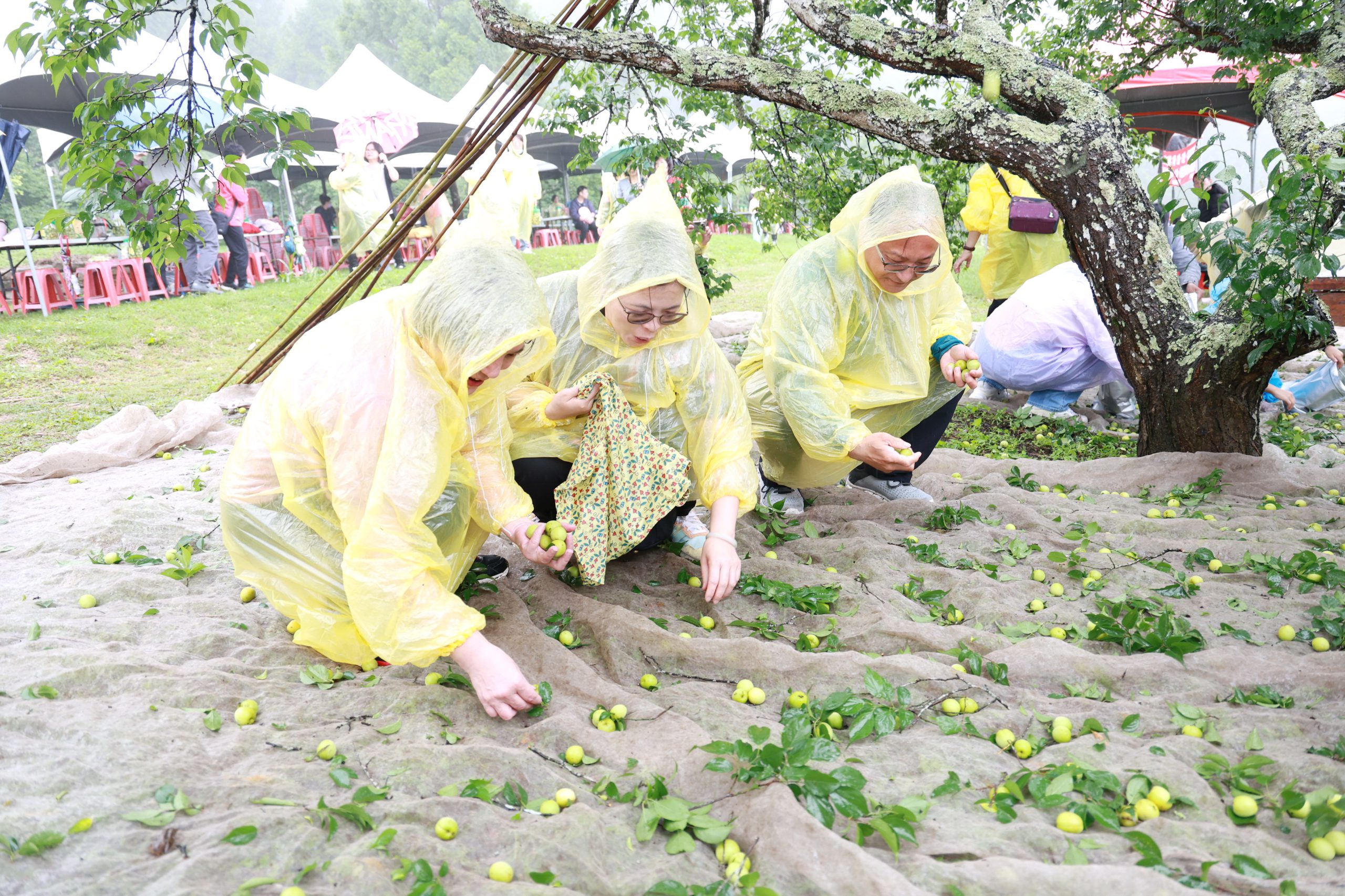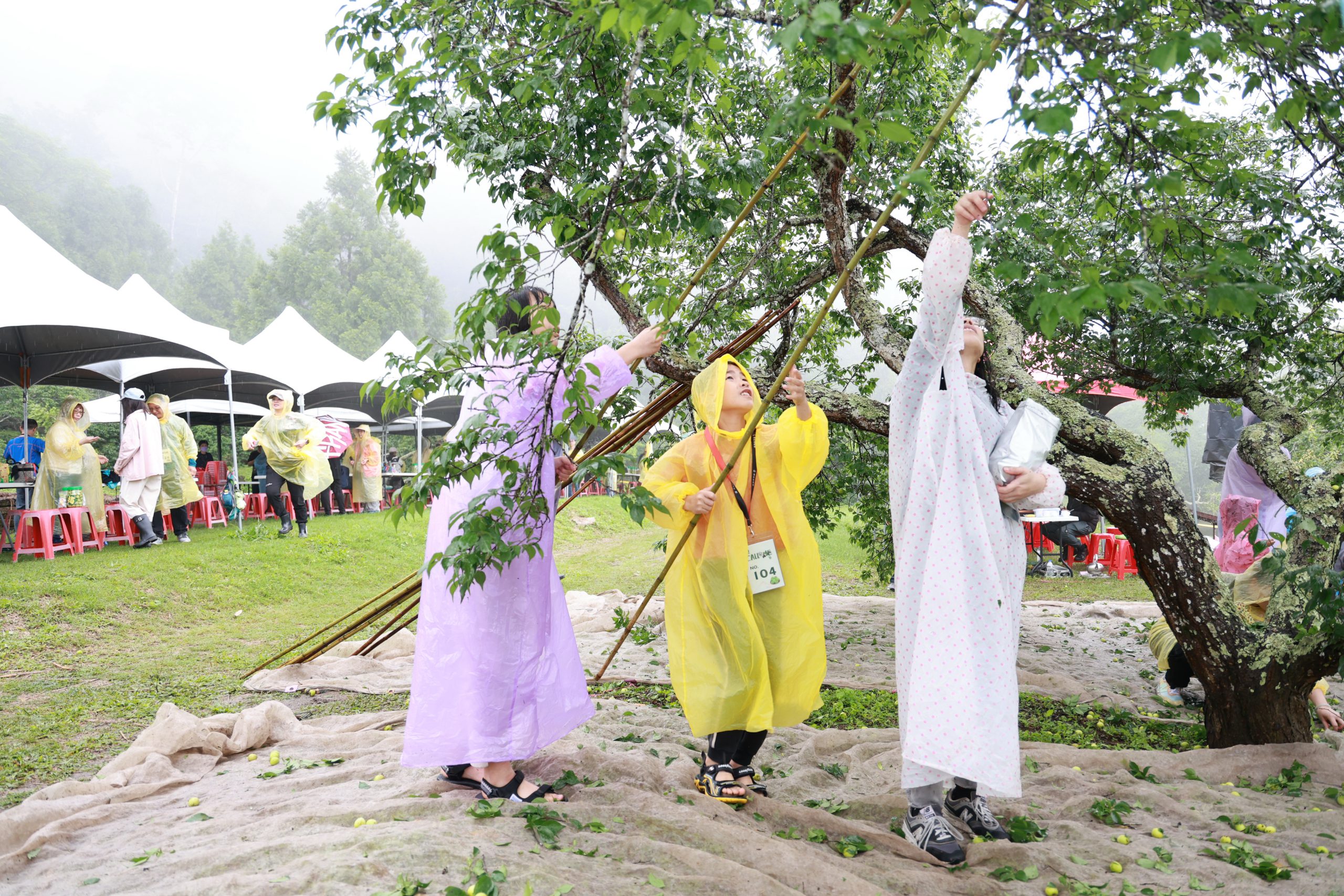 南投梅子節,好吃、好玩,趣味無窮。國姓鄉農會「Call Me梅BE梅香秘境採梅趣」13日在南港村登場。縣長許淑華微雨中與民眾一起在有機梅園中採梅,體驗一日梅農樂趣,也歡迎遊客到國姓梅園秘境,感受腳踩大地、沈浸大自然的美好。