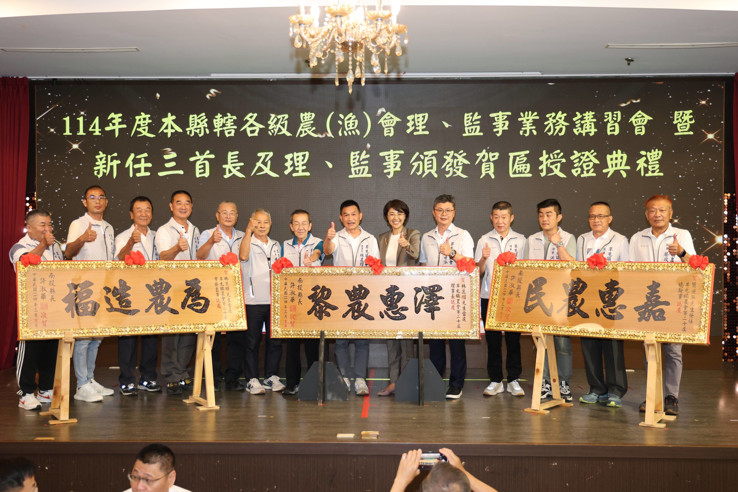 南投縣114年各級農漁會理監事業務講習,10日在南島會館舉行,縣長許淑華偕副縣長王瑞德到場,向所有新當選、聘任的理監事、理事長、常務監事及總幹事祝賀。許縣長除逐一頒贈賀匾,特別致辭強調指出,雖然縣府面臨補助遭中央大刪的龐大財政壓力,縣府對農漁會推展業務計畫的補助「一毛錢都不會刪」。