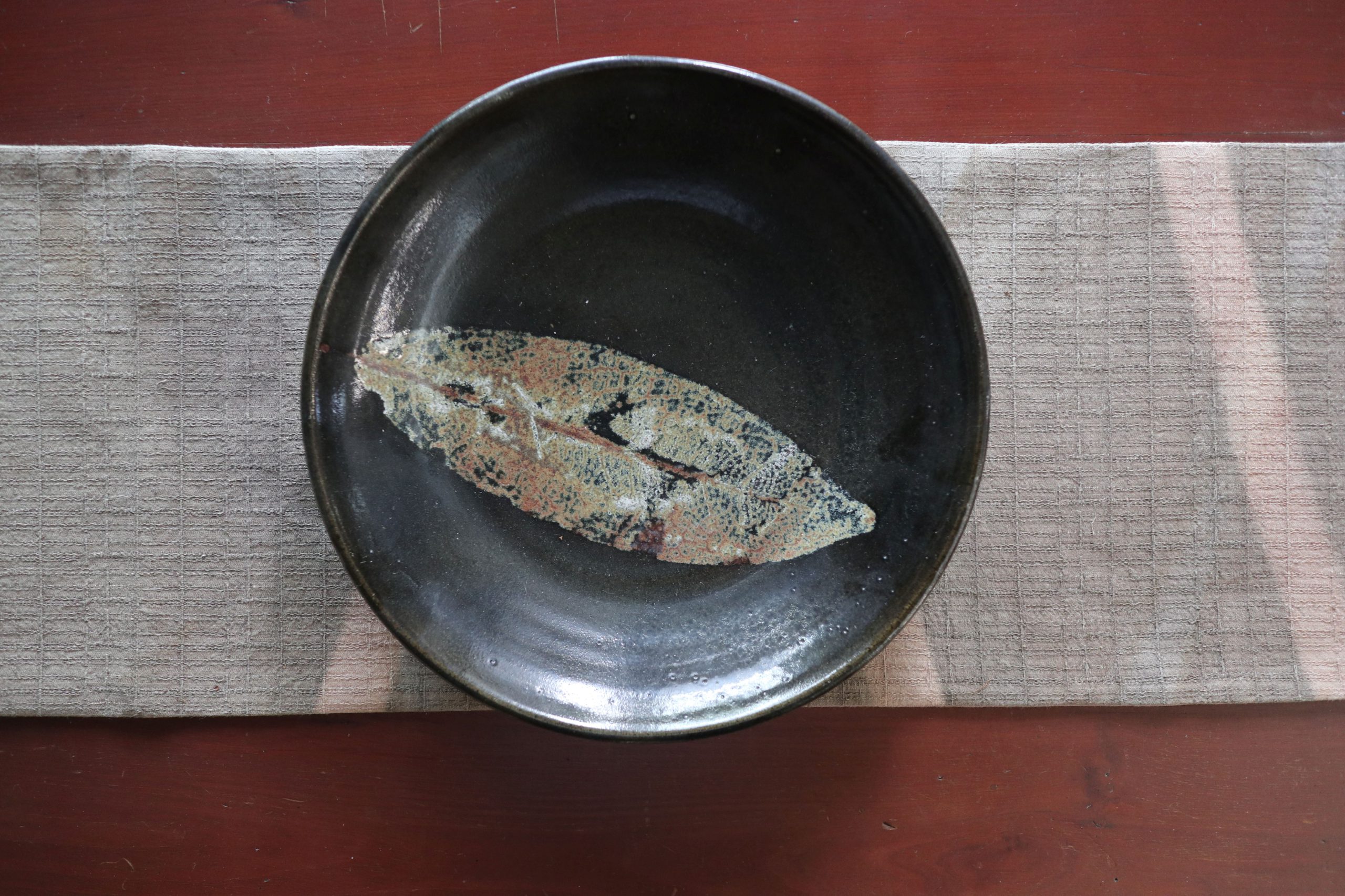只要不下雨便是花開好時節。工作的餘暇,喜歡寄情於一方陶土,透過手掌與指尖,重拾兒時的樂趣,讓生活的壓力與瑣碎事逐漸沉澱,心境變得清澈和充實。歷經了好幾個10年,走在無止境學習的陶藝道路上發現泥土只是其中的元素之一,越往深處探索越覺得浩瀚與不足!落葉像似一層厚實的地毯,彼此互相依偎著,在來年的春雨中,他們將化為春泥沃土奉獻給新芽嫩枝,在這般的累世循環中,有一片樹葉飄落入了陶人的生坯之上,於是落葉不再化做春泥,脫離了累世的輪迴,羽化成木葉天目器皿,呈現在?人的眼前!