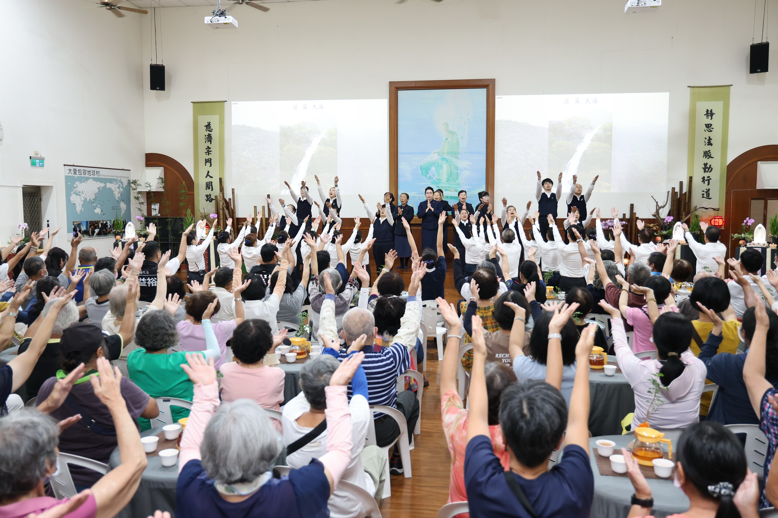 活動也安排了慈濟近一甲子在各地舉辦的活動影片及817風災的救援等回顧,與茹素的重要性,聆賞證嚴法師的開示。會中並有經藏演繹,獻供燈果花禮敬諸佛。