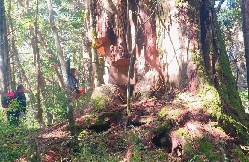照片說明:遭盜伐之生立木扁柏及部分贓物