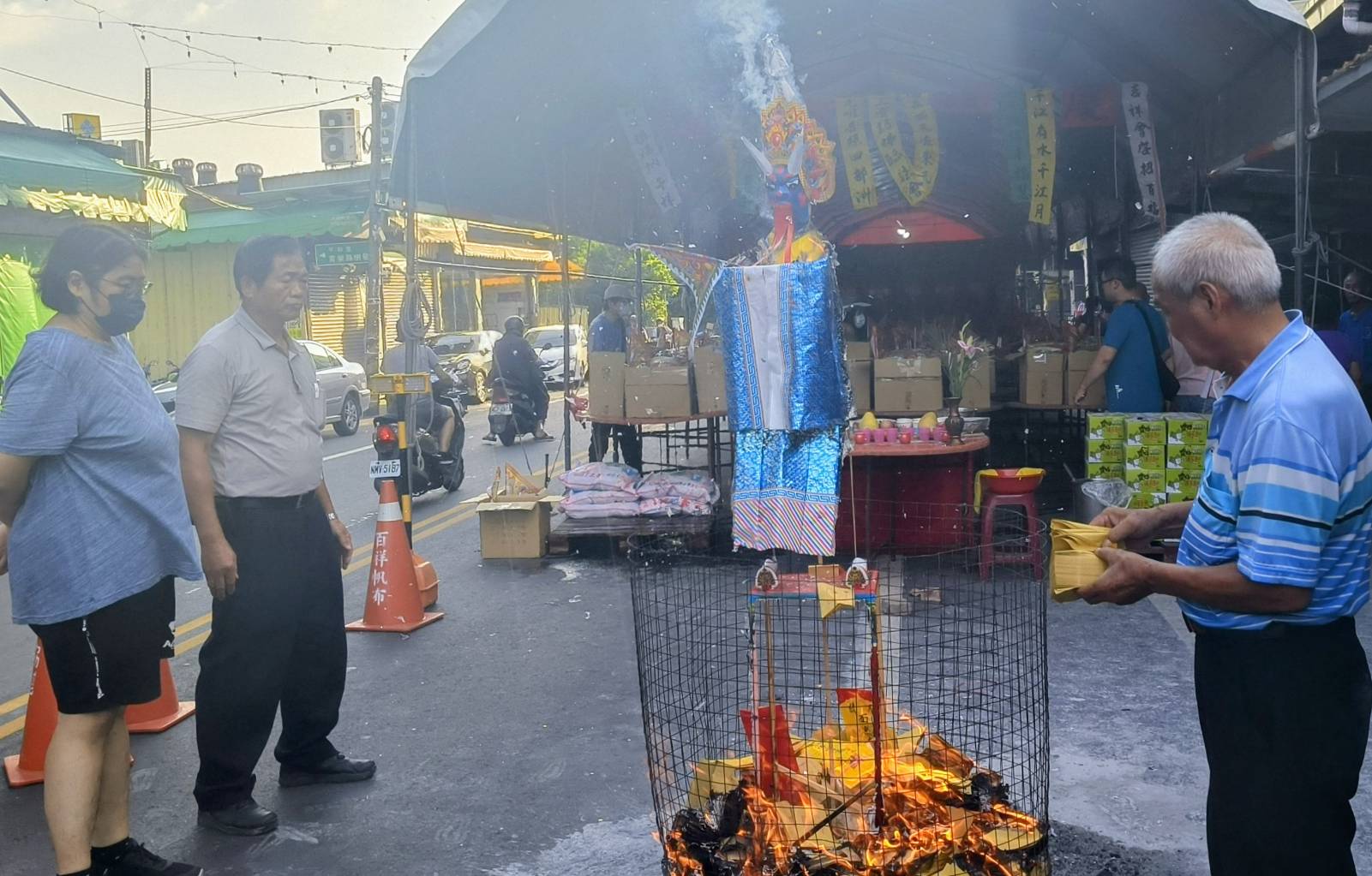 南投市平和里里長林招伯因應在地果菜市場攤商及里民要求,15日在太和宮廟前擴大舉辦中元普渡祭典,祭品數量非常豐盛,希望透過普渡法會安撫陰間孤魂,也將善念化作實際行動、照顧陽世弱勢,庇佑陰陽兩界都能平安,不少民眾也前來贊香。