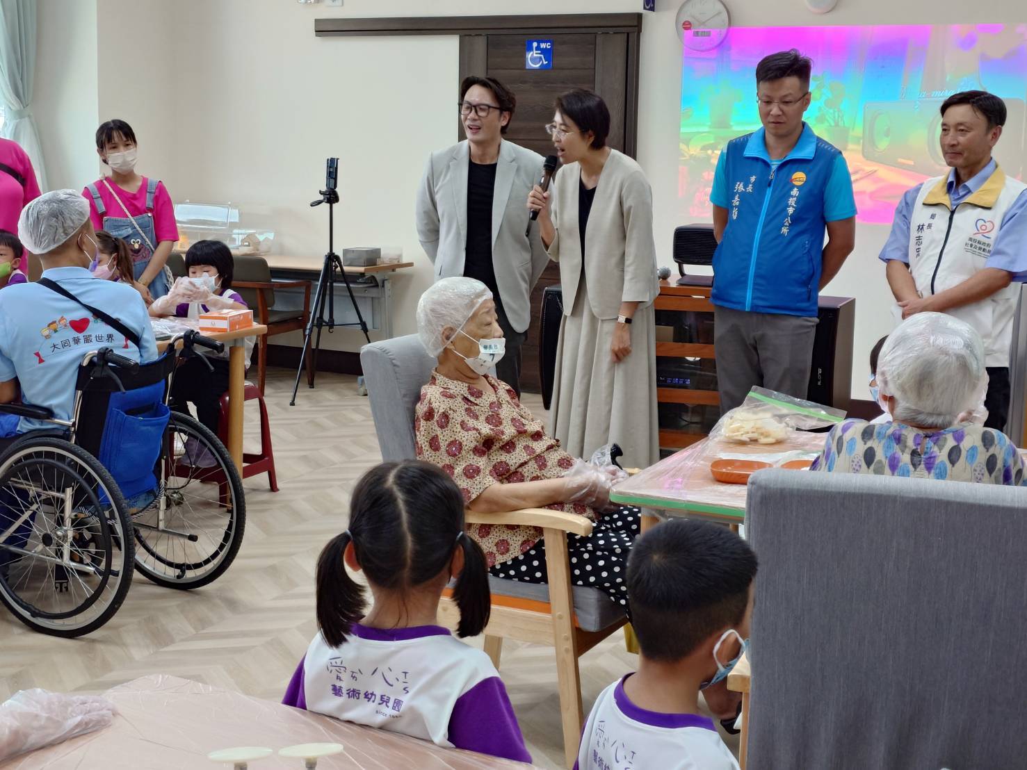 位於南投市多功能綜合大樓4樓的安泰長照社團法人附設南投縣私立朝日社區長照機構,17日舉辦成果發表會暨揭牌儀式,縣長許淑華到場參與,並與日照服務長輩和幼兒園小朋友們一同動手做月餅,並體驗復健、沉浸式VR足浴服務及和AI虛擬吉祥物對話聊天等,對於該日照中心運用新科技的創新與用心,許縣長表示肯定。